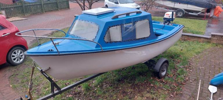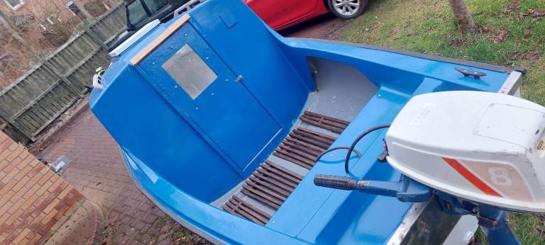 14ft FISHING BOAT WITH CUBBY AND 8HP SUZUKI OUTBOARD.