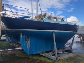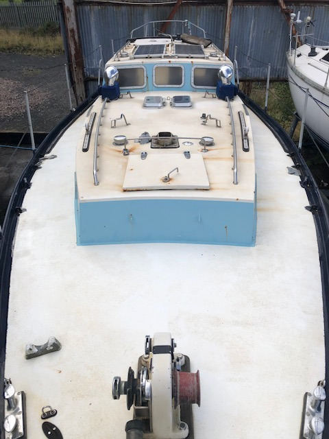 Boden Germaine 10.97m for sale. Skerryvore was built in Australia and designed by Cecil Boden for all-weather passage making. She has a deep, safe cockpit, full-length keel and an easily handled sail plan. Combined with a robust steel wheelhouse and modern diesel engine she is an excellent example of a go anywhere cruising yacht. She has been laid ashore for several seasons and partially stripped for refurbishment, mainly interior, engine and masts, so requires work to have all parts refitted. Lying Rosneath, Argyll and Bute. Good extra equipment and documentation. Brilliant world cruising history.