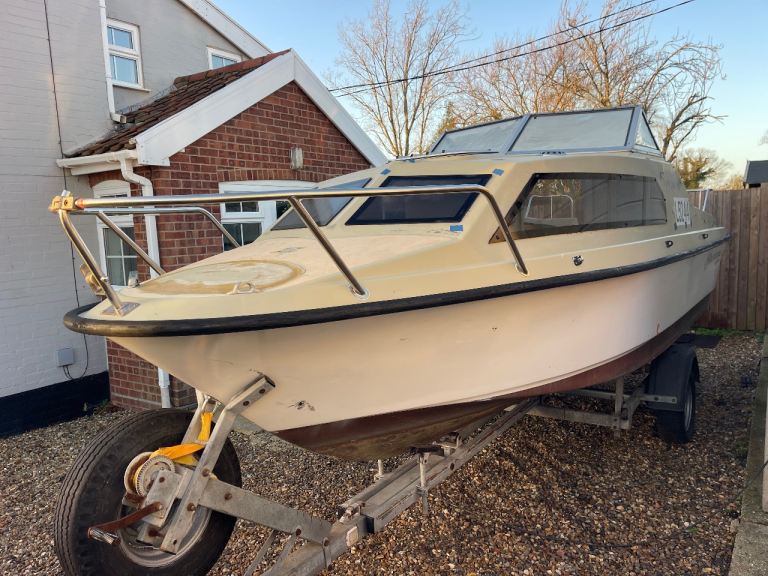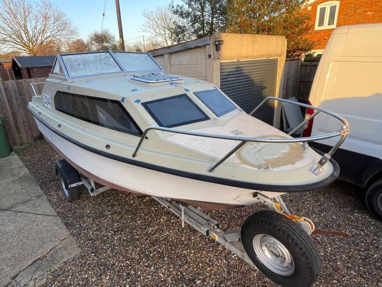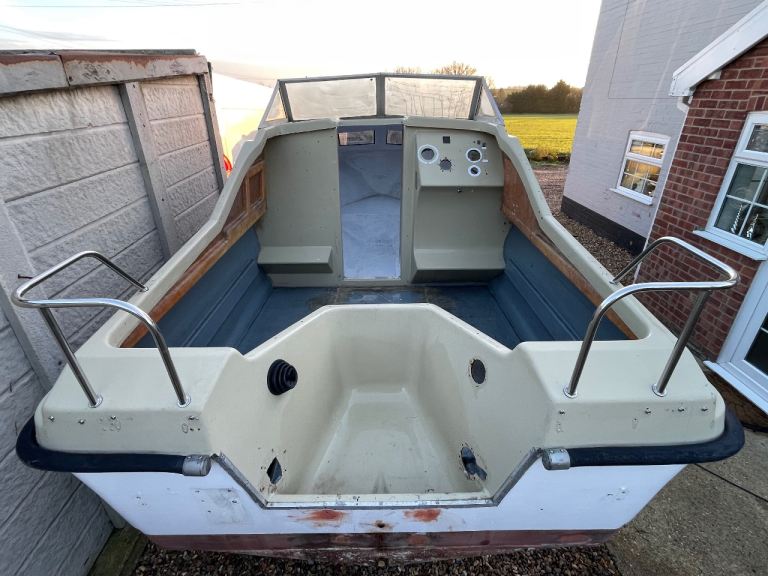 I purchased this boat recently with the intention of doing it up over the winter, but a change in circumstances mean I’m simply not going to have the time. The boat itself is water tight and floats. The floor and transom seem to be solid. It’s recently had brand new tinted polycarbonate windows professionally made and fitted and a refurbished roof hatch. The interior has been stripped out ready for the new owner to fit it out to their own requirements. There is also a separated toilet compartment. The exterior needs some holes filling from old fittings that have been removed and painting as the original gel coat is looking tired (I do have the original mooring cleats to go with it). It also comes with a stainless steel bow rail, stainless steel cockpit rails, stainless steel roof vent and fender eyelets.