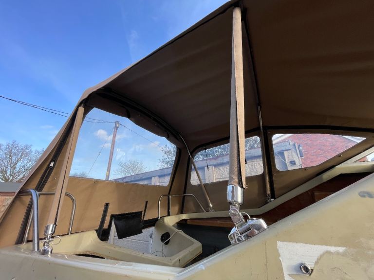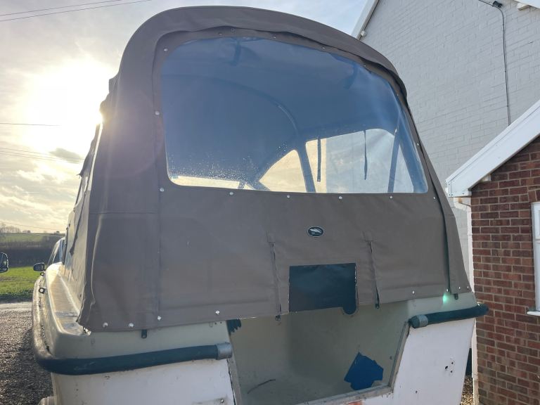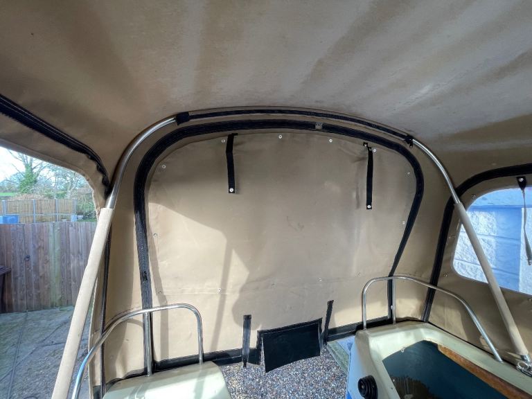 It comes with a top quality uv resistant acrylic canvas canopy made by Titan Boat Canopies in May/June 2025. It has removable sides and rear sections. It comes with a full set of matching blinds and stainless steel framework with quick release fittings that was made at the same time. It cost £2400 to buy.