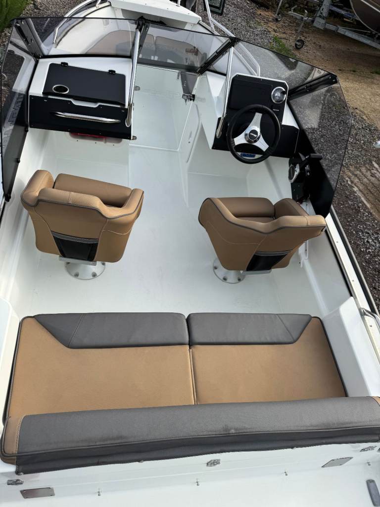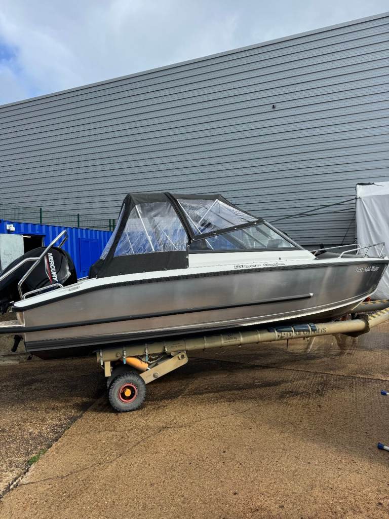 This Silver Fox BR is so much fun for the family or fishing trips or just towing water toys. It is 4.85 m long and has a Honda 50hp outboard, the engine has 99hr use since new. The boat & engine was manufacturered in 2020 ..This boat has had 2 owners since new. The great things about this Silver Fox BR is it has the robustness of the Aluminium hull but the refines of the grp deck so the best of both worlds.. The hull sides are foam filled so the boat is also unsinkable. She is fitted out with everything you need for a day out on the boat and the specification includes:- Hull Antifouled in Black (New Antifouling applied April 2024) Full set of sea cushions, 25 litre fuel tank, Navigation lights, Harbour cover, Fire extinguisher, Raymarine Axom touch screen navigation system with fish finder, Door between cockpit and bow area to stop the through draft whilst cruising, Plenty of safety hand rails, fender, ropes and anchor, boat hook, cleaning equipment. Boat comes with a trailer which is an Extreme roller coaster and it was new in April 2025 and been used twice in the water due to the boat being in a dry stack this summer. The boat is at Bailey Bridge Marina if you would like a viewing.
