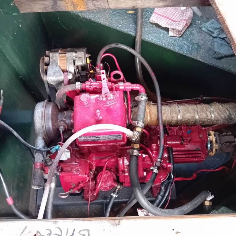 BUKH DV10. 4x new leisure battery.The engine has been fully restored and runs like a dream.She is absolutely awesome on diesel and because she has the old steel from the 80s,over 45 years old and, has only lost 0.5mil .She is solid and goes all day long ,I also have all proof of work done and what was brought new. Fitted kitchen. Multi burning stove. Sink and cassette toilet. Inverter and land line electronics. Electric water heater. Open plan lay out. One to two berth optional. New anodes and hull blacking until Sep 2028.