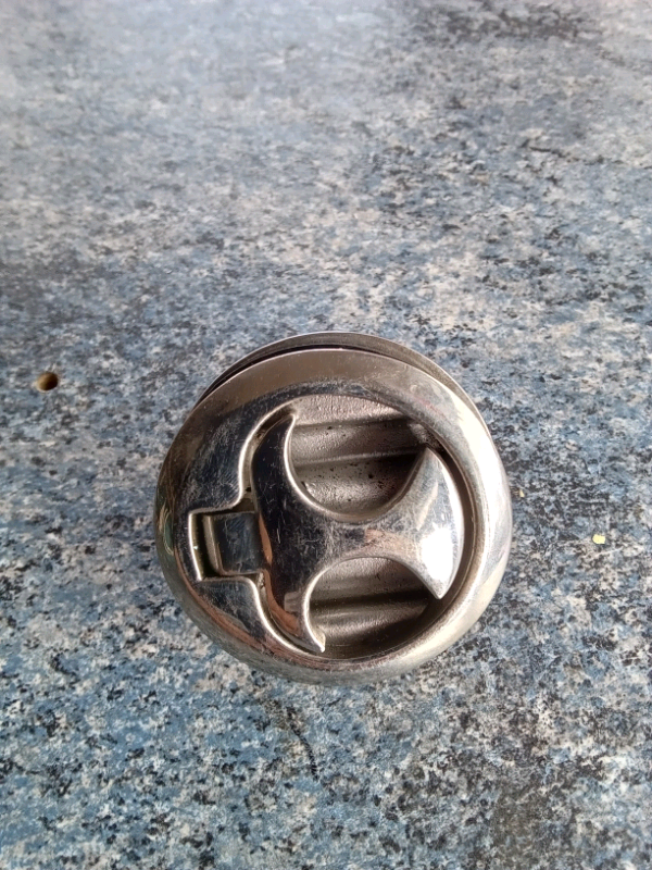 Boat locker/door ring pull catches. 60mm diameter. I have 2 in stock priced each at £10.00 plus postage at £8.00. Stainless Steel, very good quality fittings