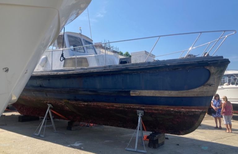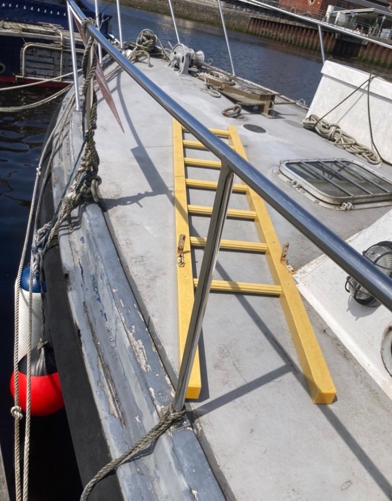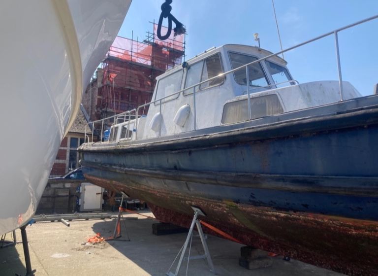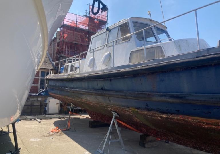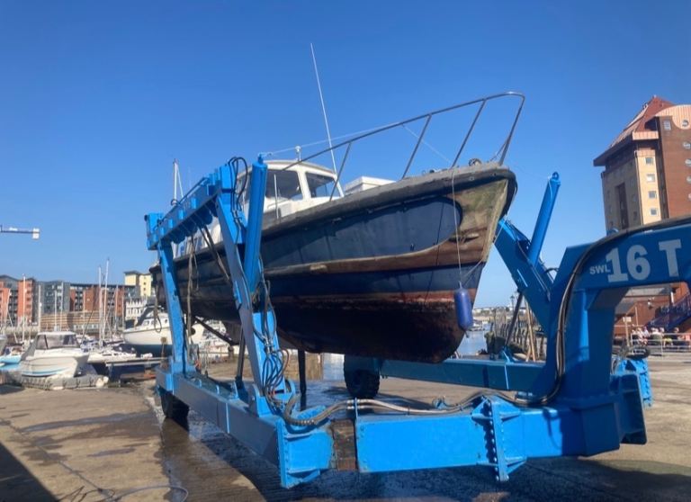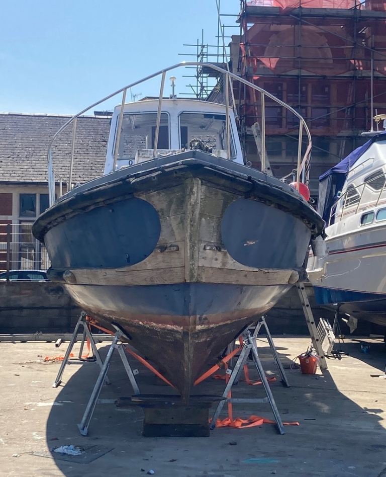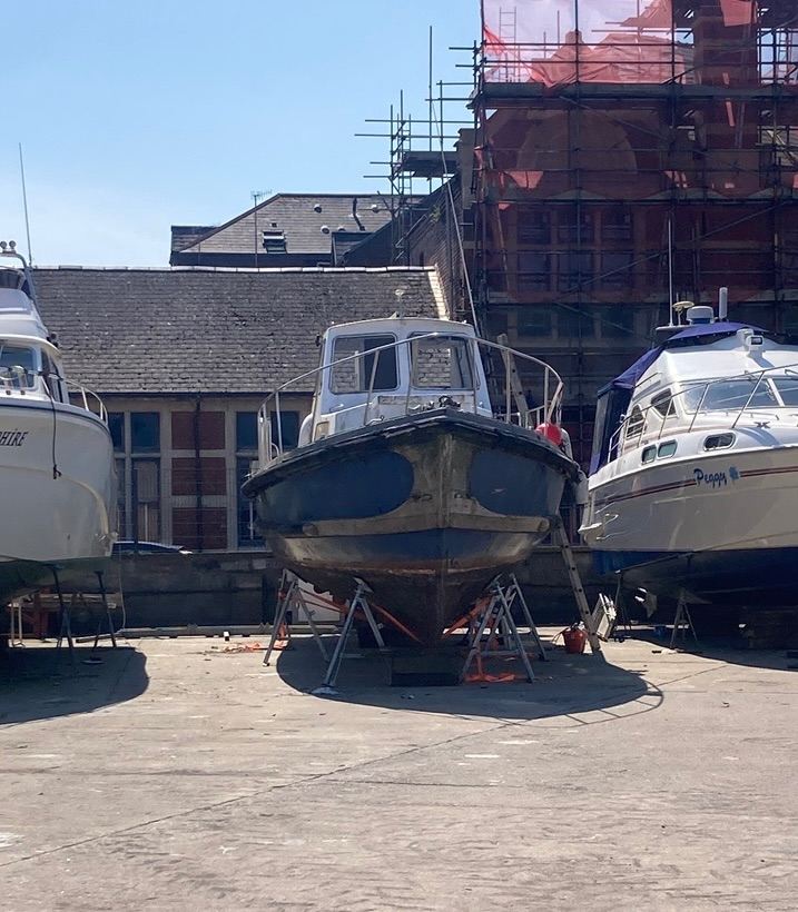Currently out of water for a light renovation, hull paint and anti-foul, rear bedroom bathroom update exhausts tips made.