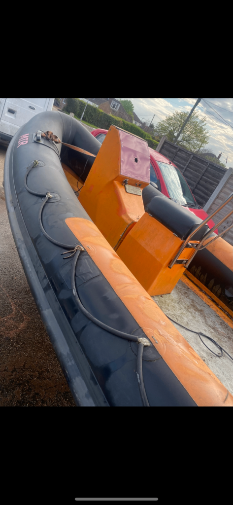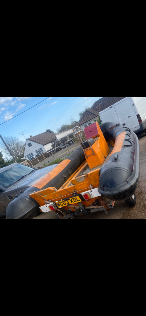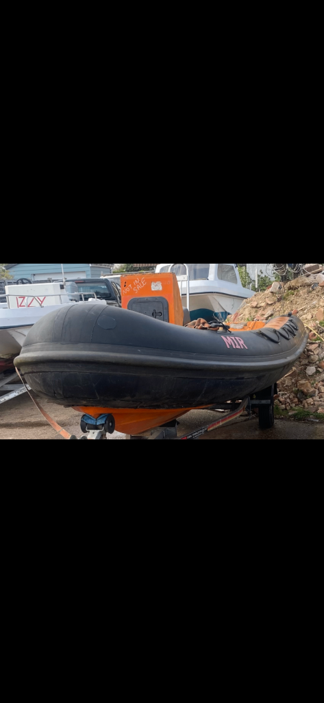 For sale Bwm commercial rib 5mm on galvanised trailer needs tidying and steering fitting no engine holds air £1100 Ono