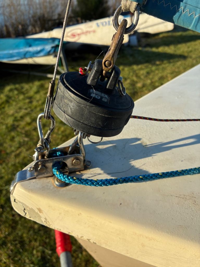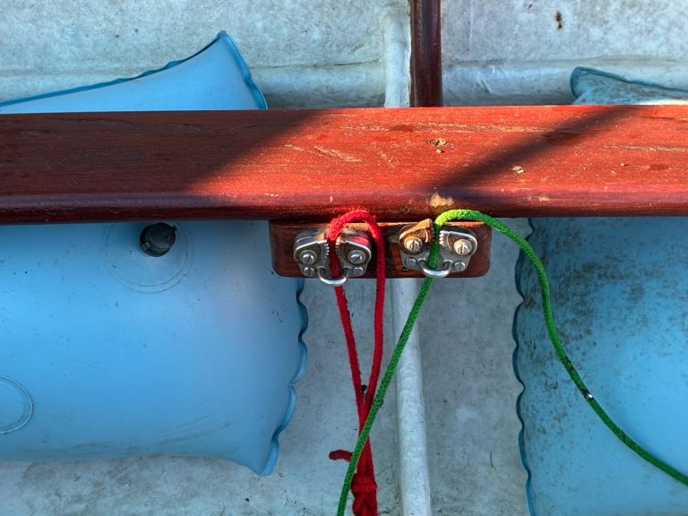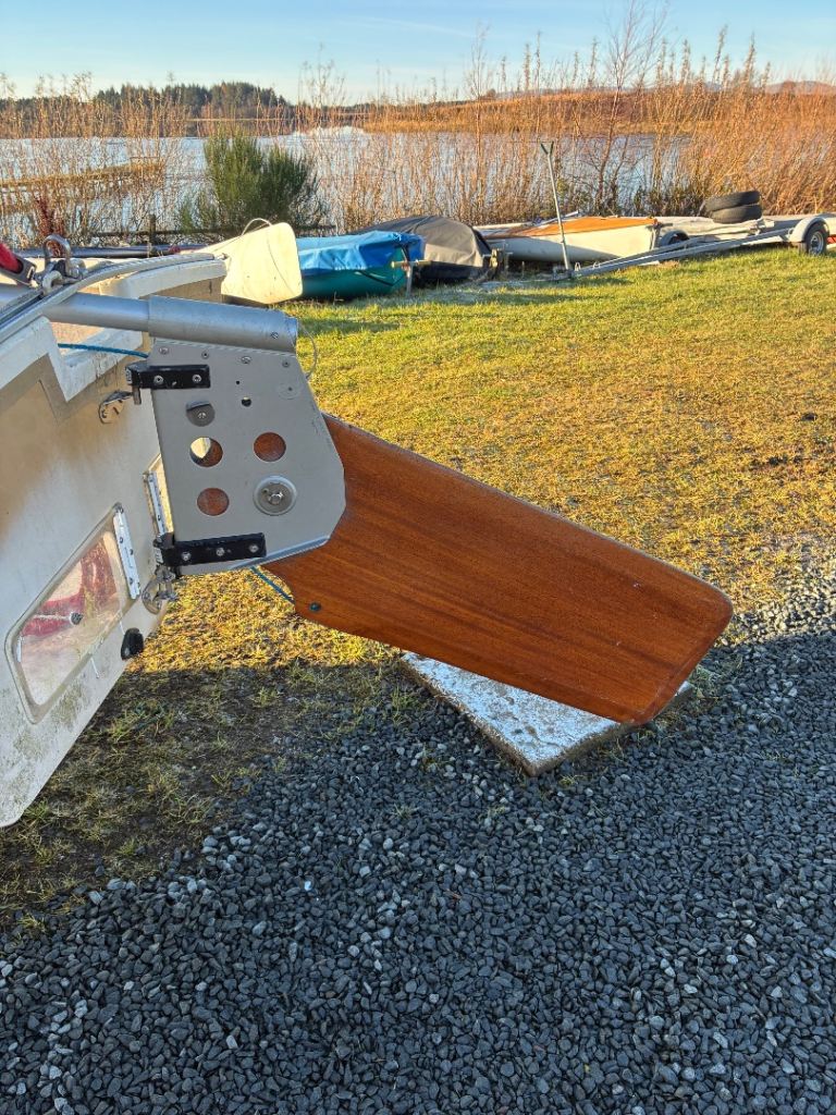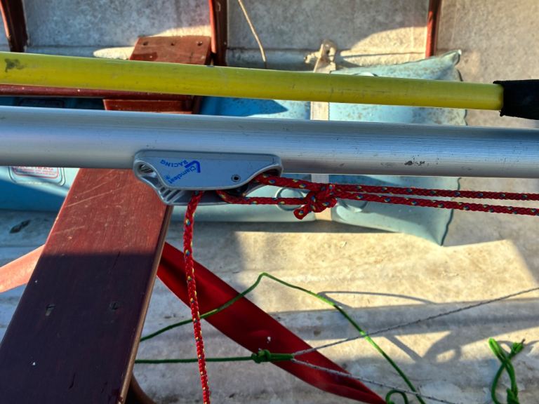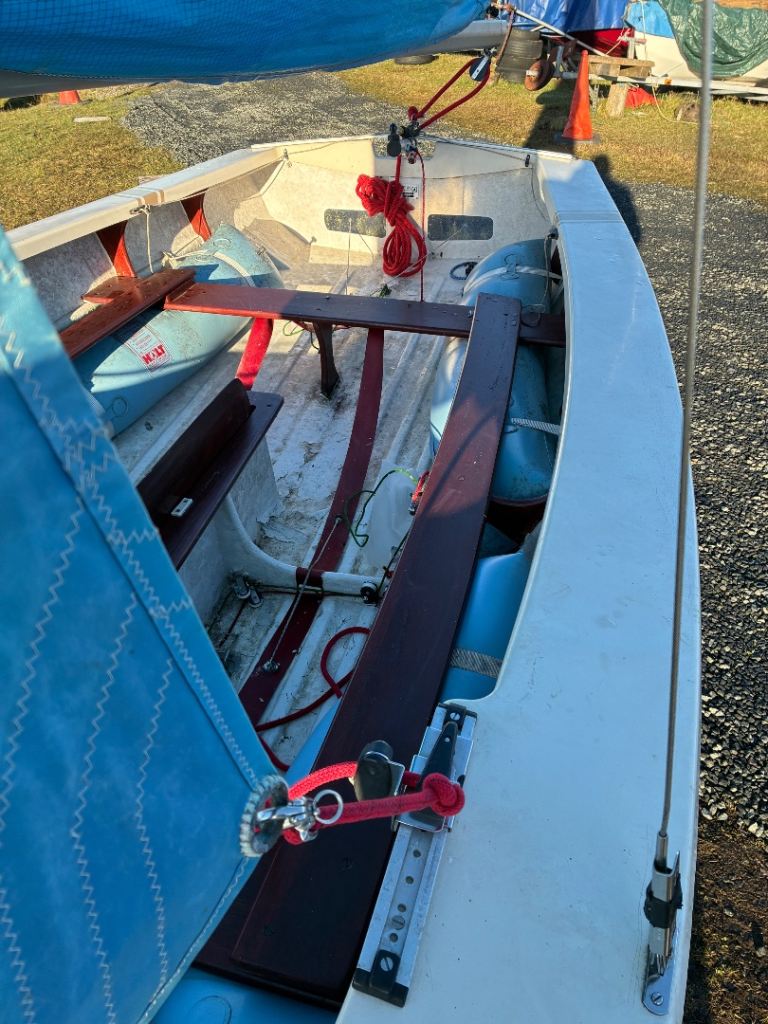 Fitted with Cunningham and kicker lines to midship. Self bailers. 4 buoyancy bags.