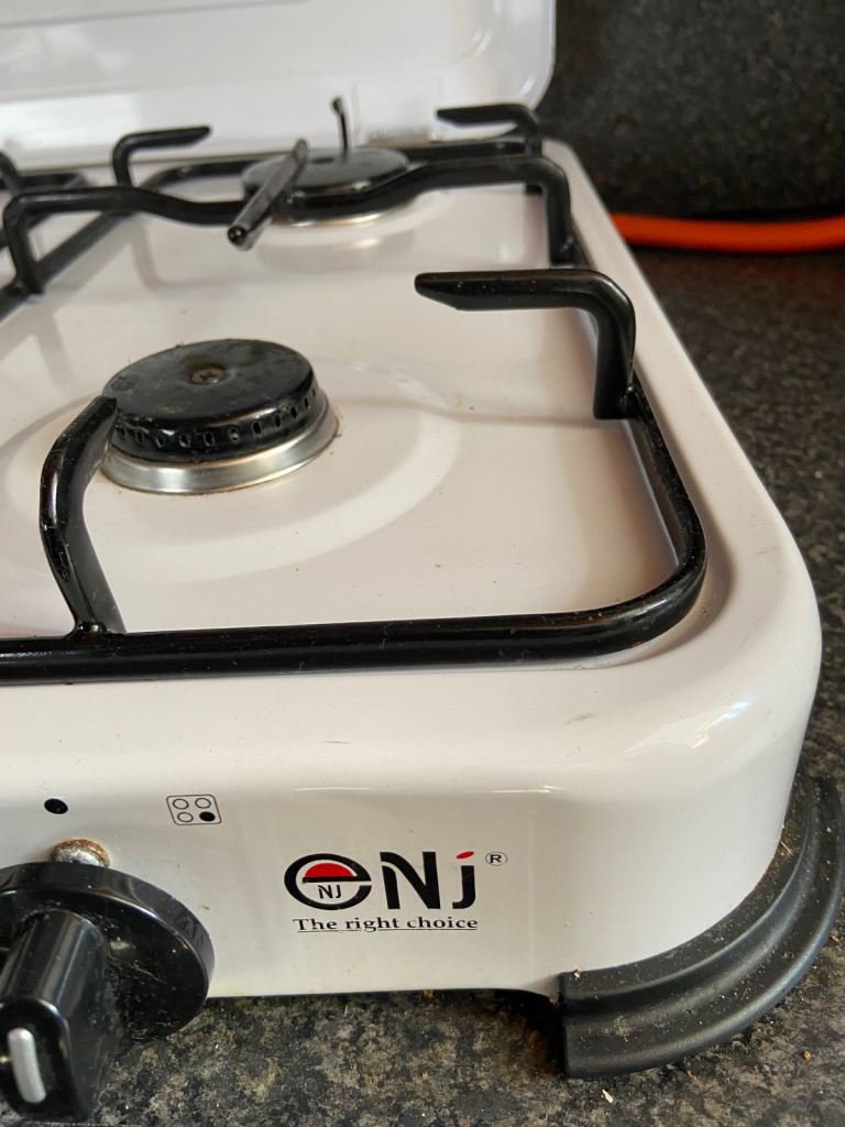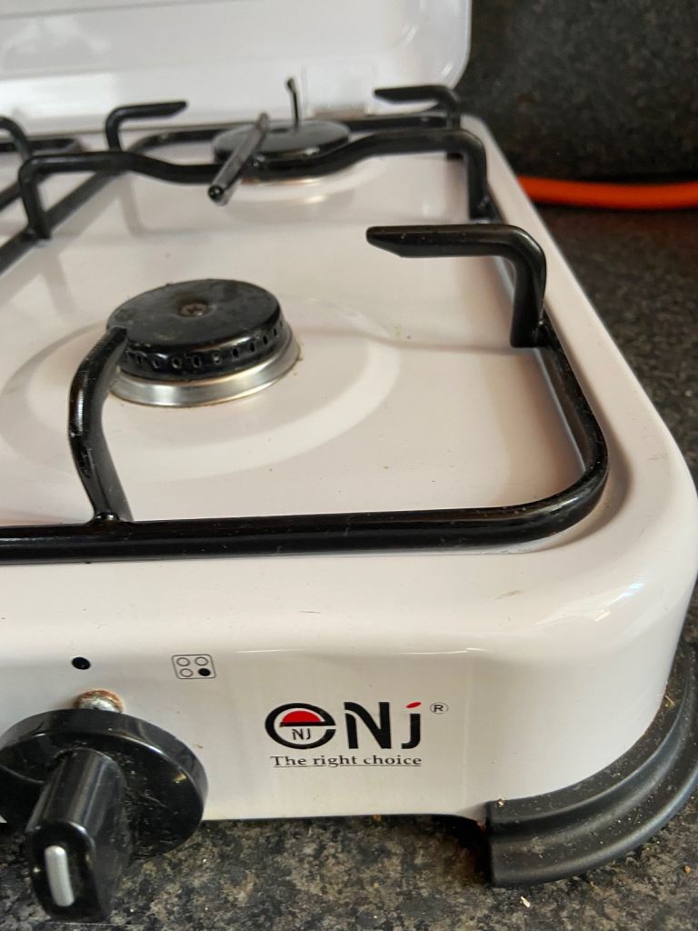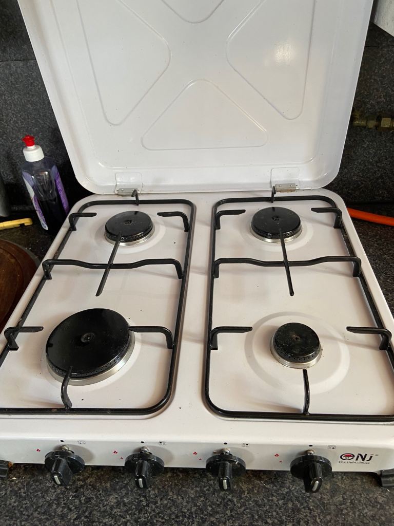 Here we have the new used less than a hand full of times four burner Hob, matal enamel casing , cost enough new, lid folds down.
