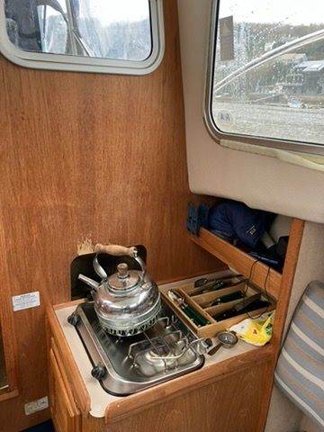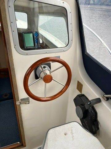 Hunter Landau 20 motor cruiser, Honda 20 hp 4 stroke fitted fully serviced March 2025. Tohatsu 6hp auxiliary outboard. Mooring lines and fenders.Two single settee berths in single cabin with approx. 6'4" max. headroom. Bimini and camper cover. Portaporti Safety Equipment :Fire extinguisher Fire blanket. Two burner gas stove to port. Galley sink to starboard with hand cold water tap. Blue carpets. Curtains & blinds. Anchor. Swiming platform with boarding ladder. Afloat Malpas, near Truro..