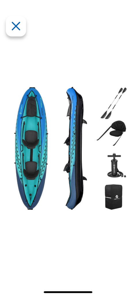 INFLATABLE CANOE KAYAK, 2 OR 1 PERSON BOAT, COMES COMPLETE. NEW BOXED