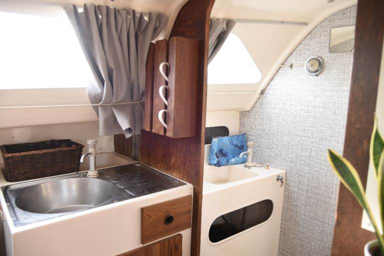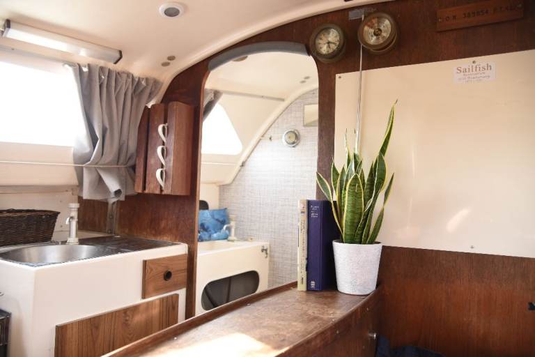 5 comfortable berths with generous 6ft headroom in the main cabin