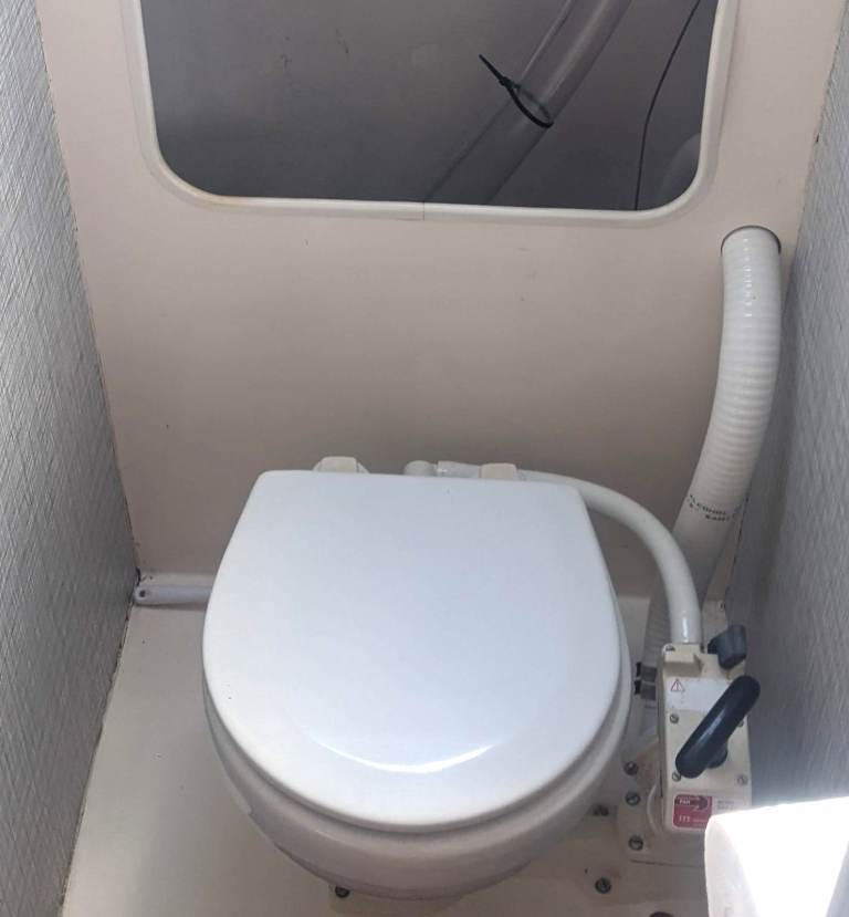 Separate heads with recently replaced sea toilet (2022) and sink
