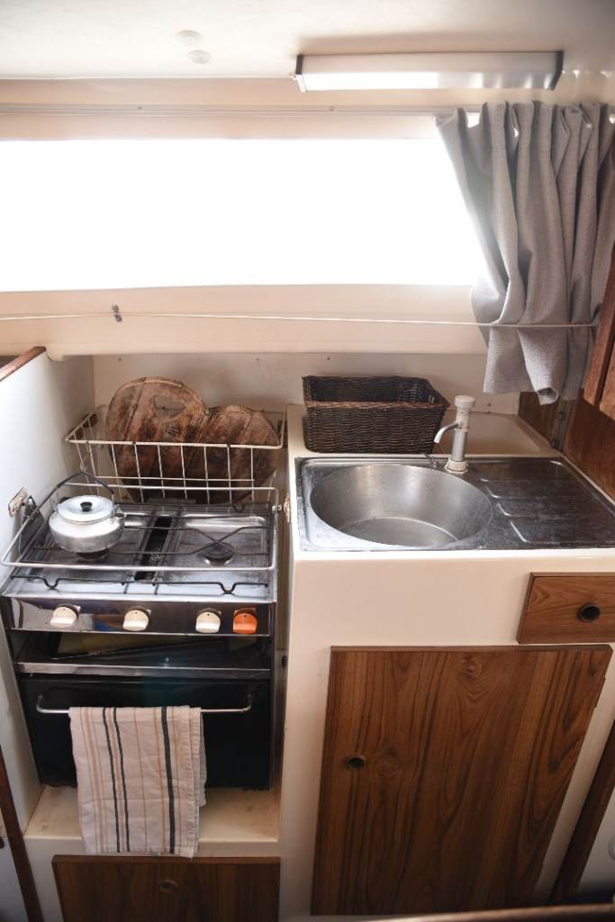 Interior & Comfort: Galley with 2-burner gas cooker, oven, grill, and sink