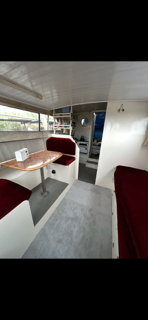 Norman 29 for sale powered by a BMC 3.8td diesel engine giving around 60hp, (built for river use) the boat benefits from a recent refurbishment 8kw diesel heater, 240 electrics, the cooker in the photos has been removed as it broke, currently has a 3 burner hob & grill, I will get some more photos, amazing headroom & a huge amount of space for a 29ft boat, would make a good Liveaboard. Large heads & shower.