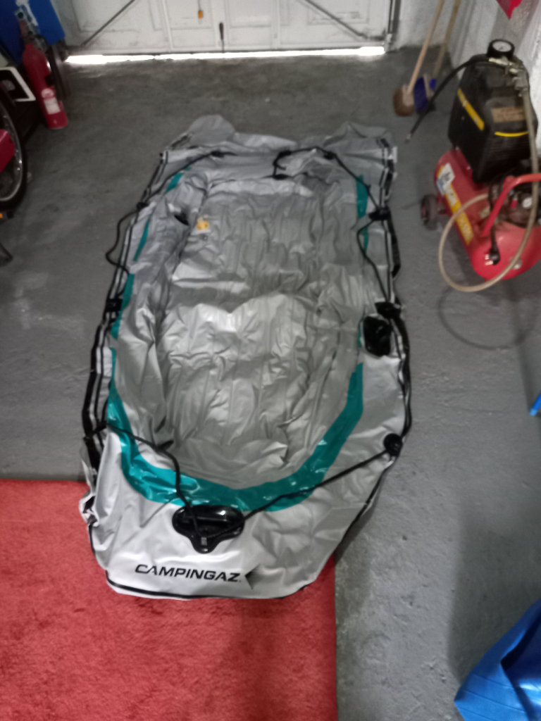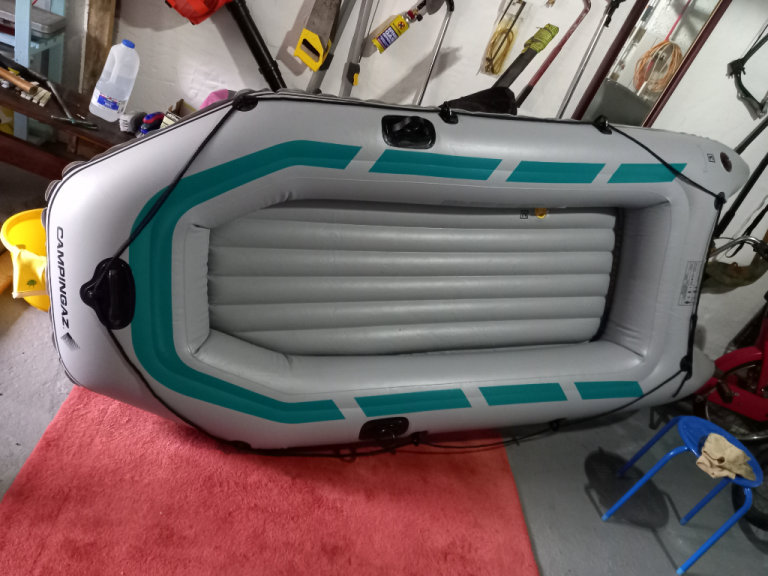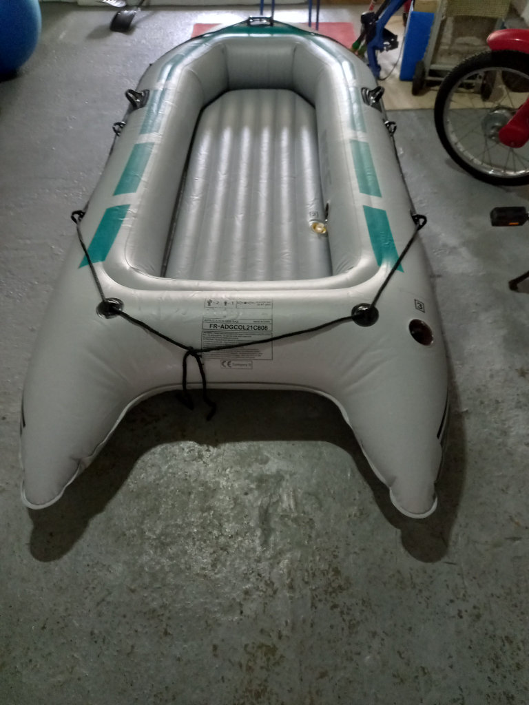 Used only a couple of times, so is in perfect condition, can easily carry 2 adults. Including inflating pump.