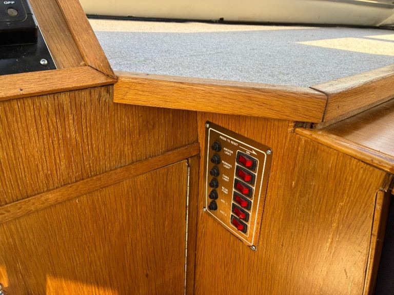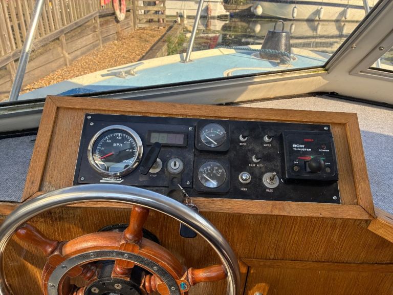 Teak & holly flooring, warm air heating, bow thruster, toilet compartment with a pump out toilet, basin, shower, hot and cold pressurised water system ( water heated via calorifier ) 12v waeco fridge, shore power, 240v sockets, battery charger. Navigation lights, Led lighting, Easy access stern cutout & a new set of fenders
