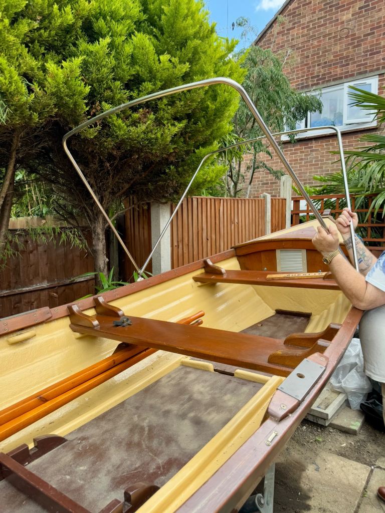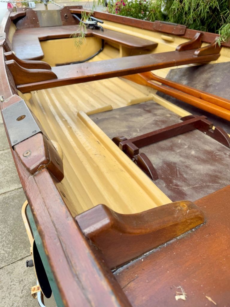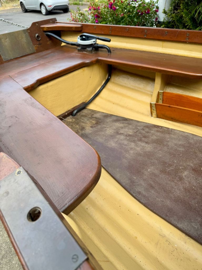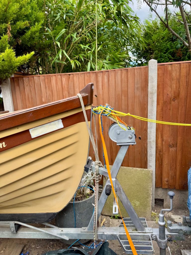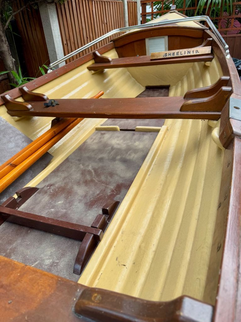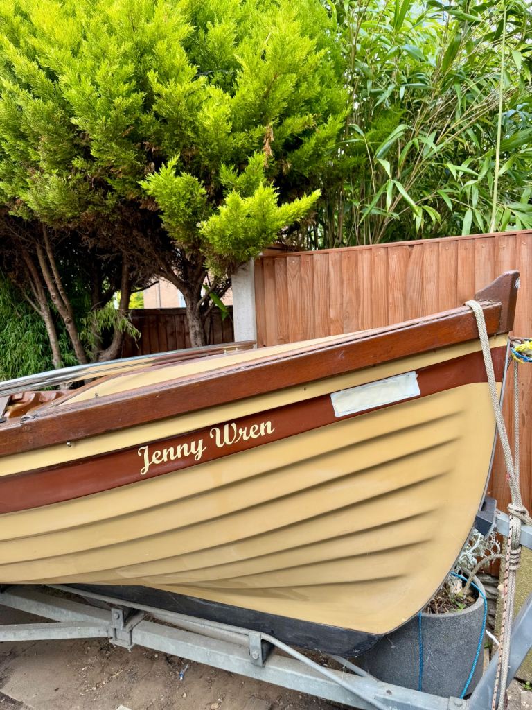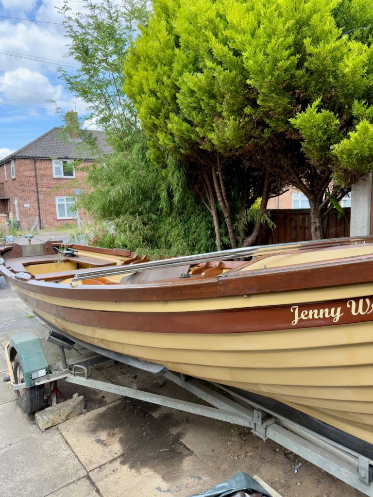 Shelin 19ft Irish lake boat. Complete with trailer made to fit the boat. With rollers on for ease of on and off the trailer. It has a canvas hood made by Jekylls at a cost of £1000. It folds up and down as you require. The canvas is in very good order. Years of life left in it. The boat has anti slip on the walking areas. It will come with a couple of life jackets a life saving horseshoe, bouys, there is a set of locking wheel nuts for the trailer. Has a lockable tow hitch. Oars. Brass rollocks. etc.. £3,250. Or very sensible offer. It has a 8hp long shaft engine.