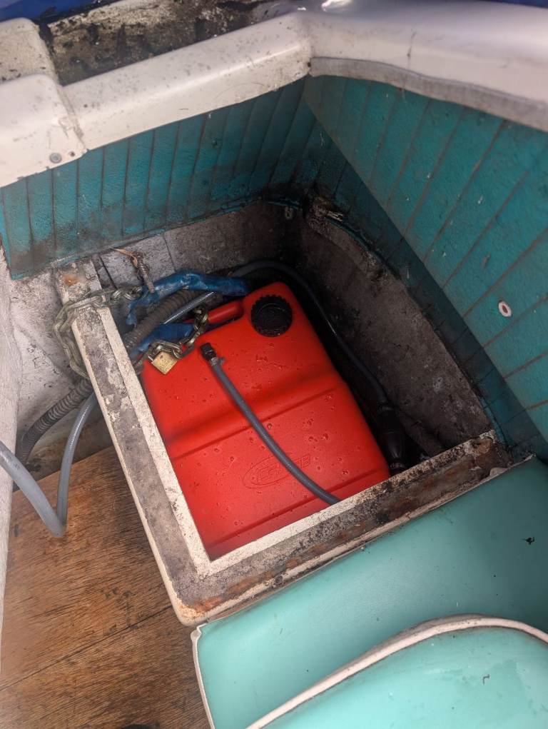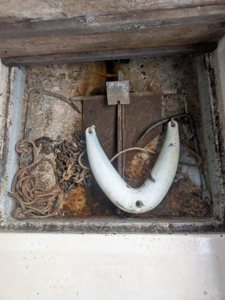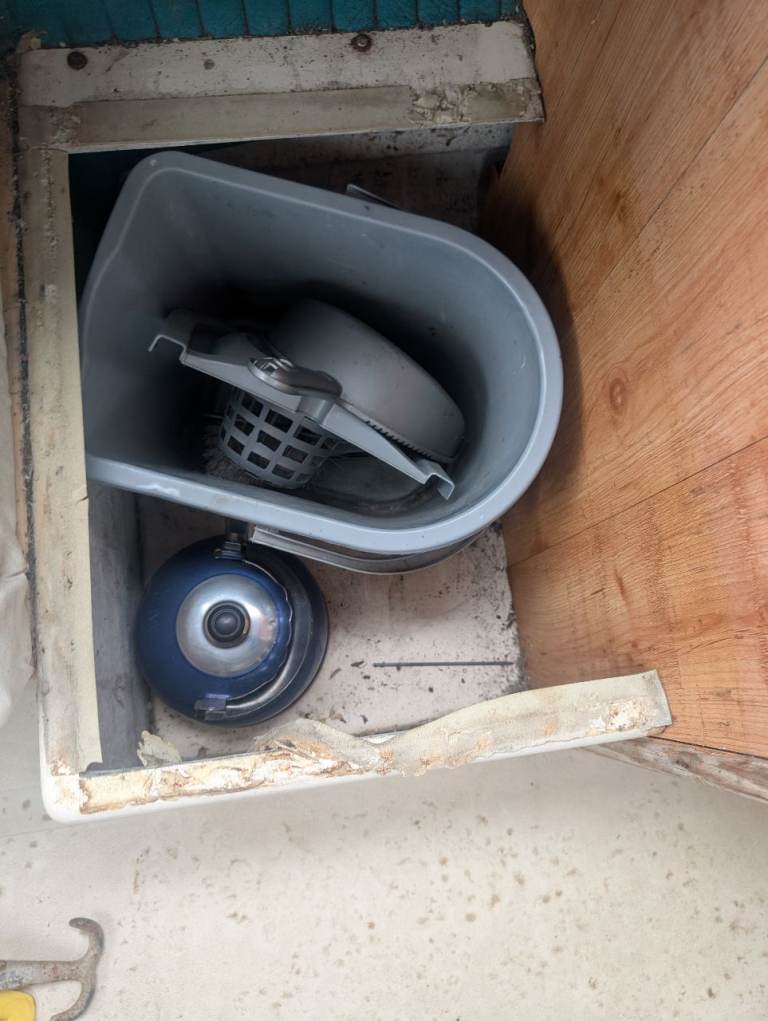 Radio, LED strip lights and LED main light, carbon dioxide alarm, first aid kit, portable gas stove with kettle, porta potty (we've never used), mop and bucket, various rope, anchor and 2 Rhonda anchor's,