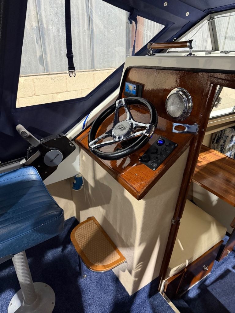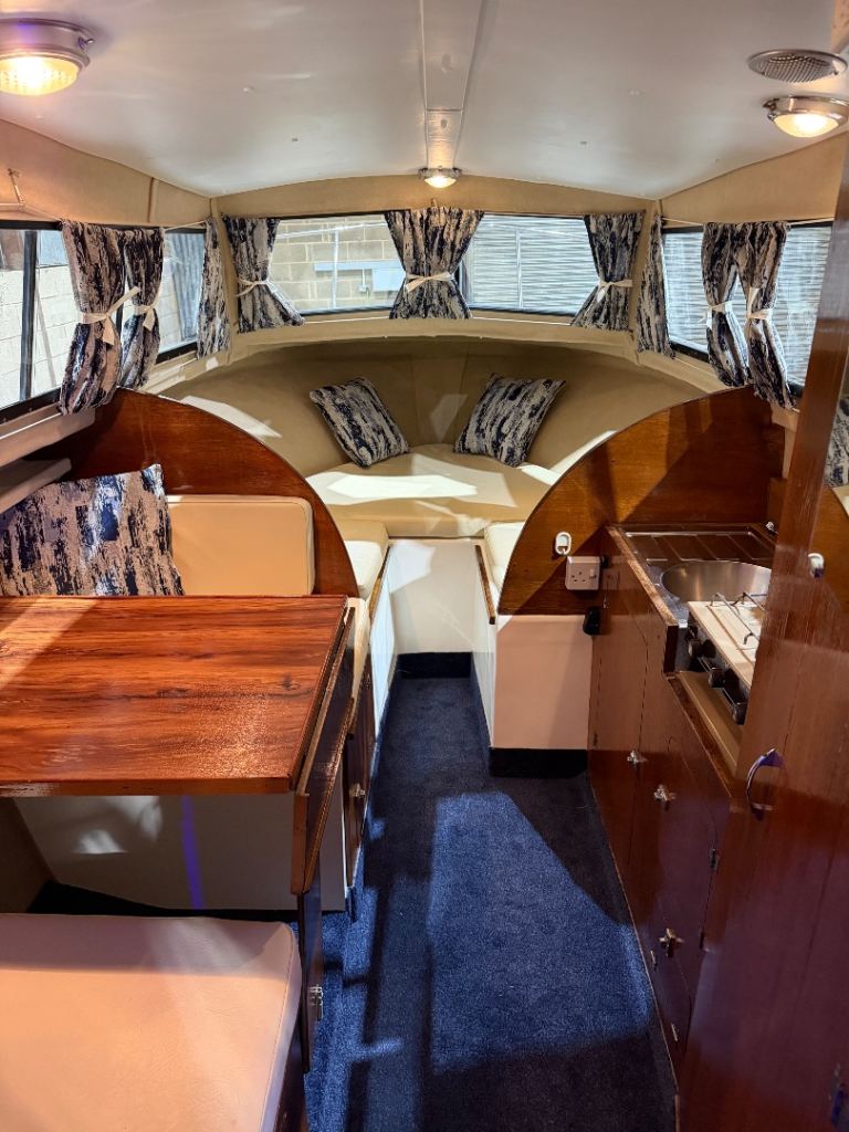 Total refurbishment to include new canopy, new cockpit seats, new curtains and cushions, new carpets, new interior linings and ceilings recovered, new lighting, new electric tap,new horn, new Spotlight, new solar panel 30 W, new ropes, new decals, new flag, new fenders . Machine polished.