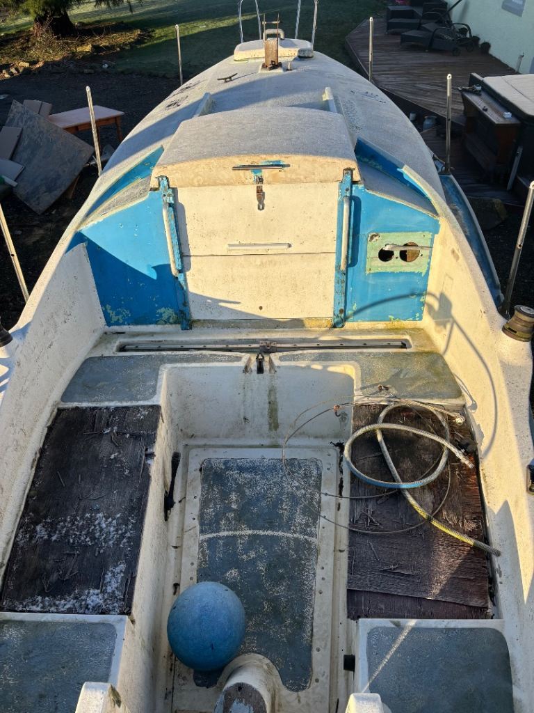 Has mast and rigging, sails , interior cushions ,onboard toilet, tiller, Yammer 1GM10 inboard engine