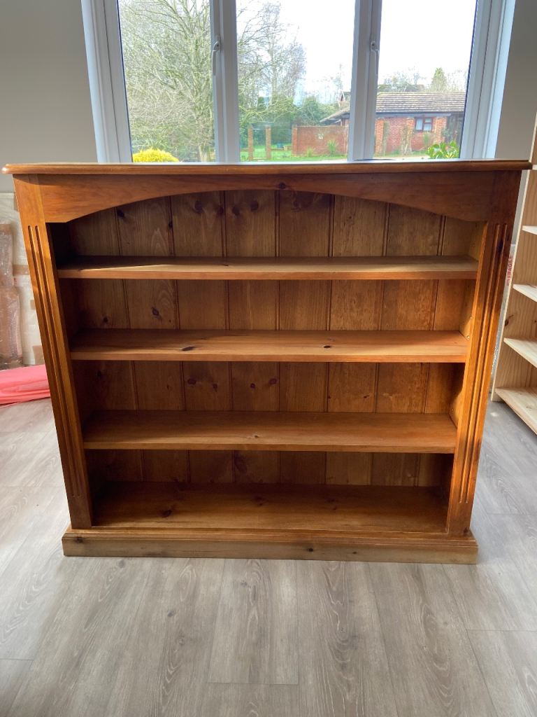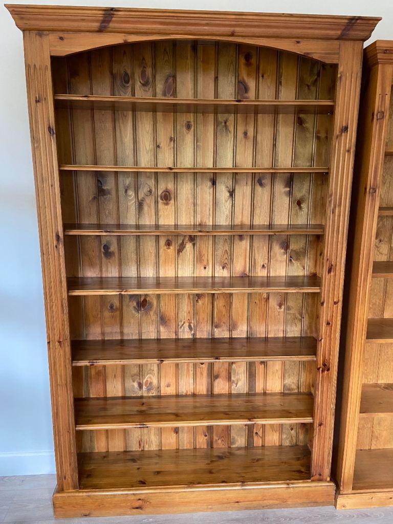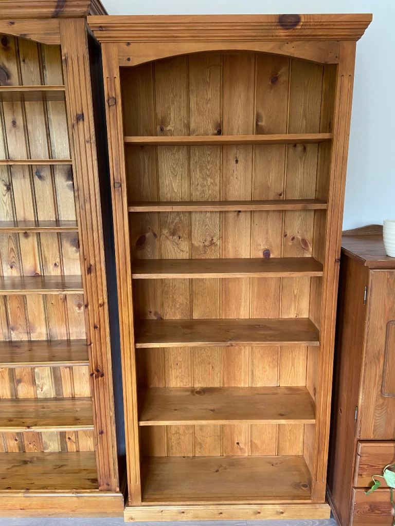 Set of bookcases in waxed pine wood, purchased from Wayfair and the brand is Three Posts. Purchased last August and in great condition.