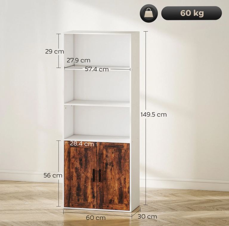 5 Tier Bookcase With 2 Doors Rustic Brown Brand New