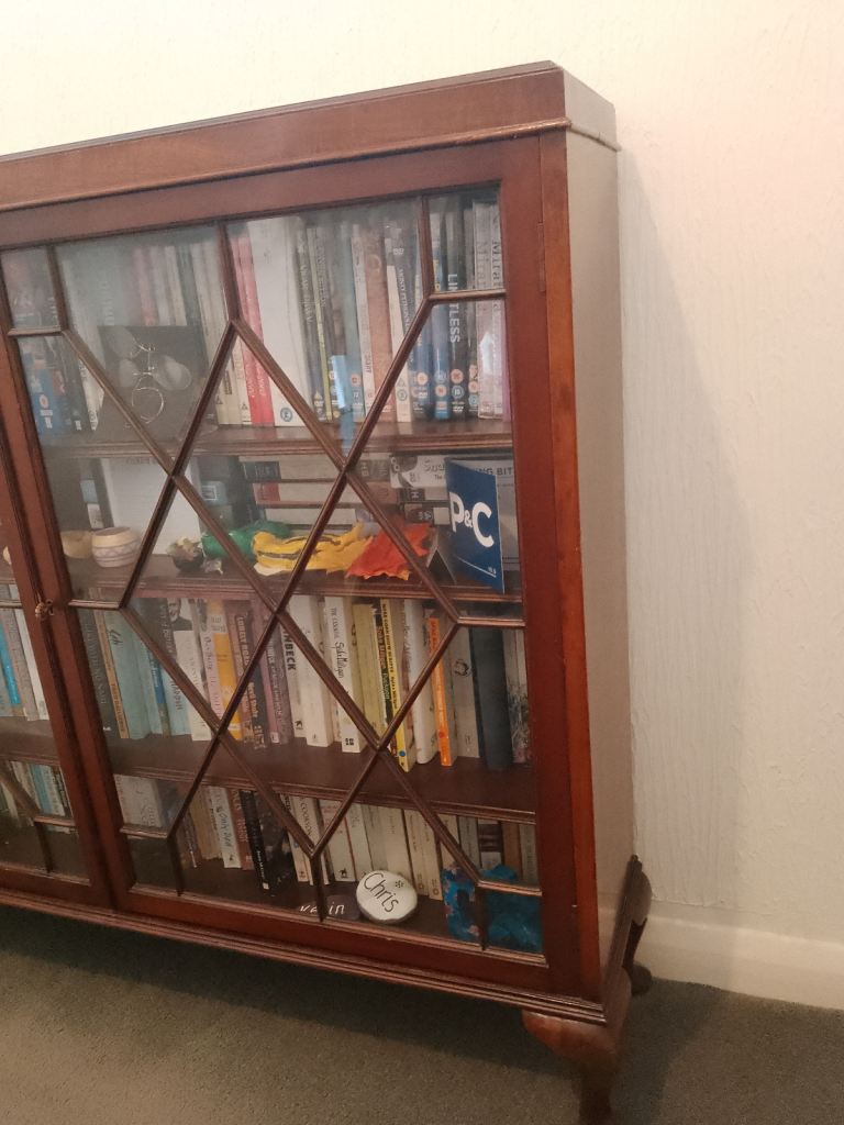 Posting for 7+ yearsAntique bookcase / display cabinet with glass doors and wooden shelves