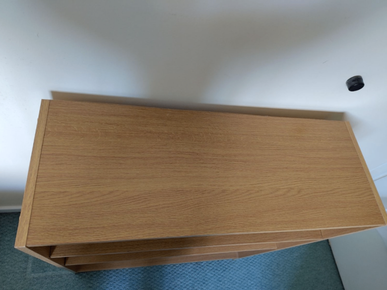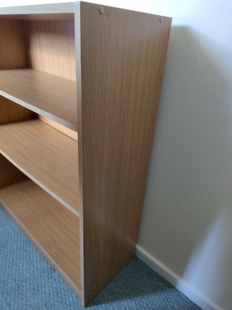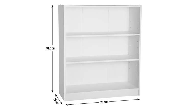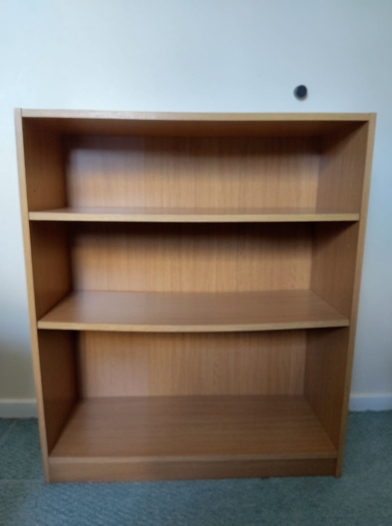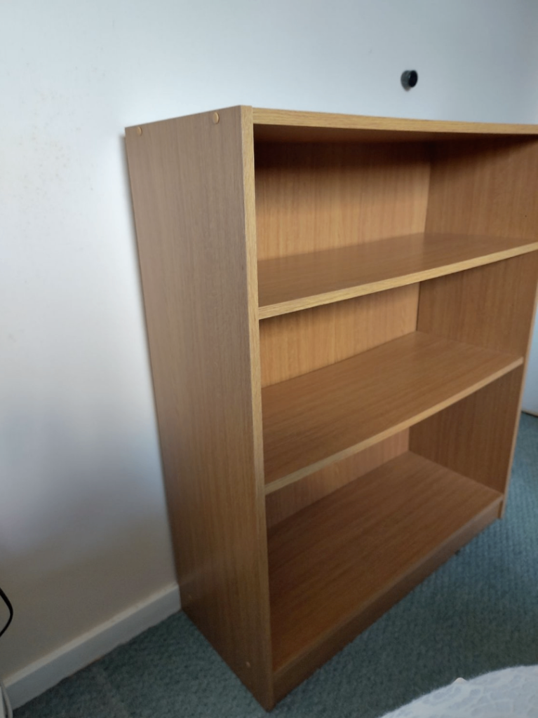 One fixed and two removable/adjustable shelves. One shelf is very slightly bowed, but it can be fitted the other way up and with some books or similar it won’t be noticeable. Very good condition. See photos for Argos website then some of actual bookcase for sale.