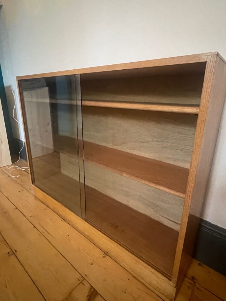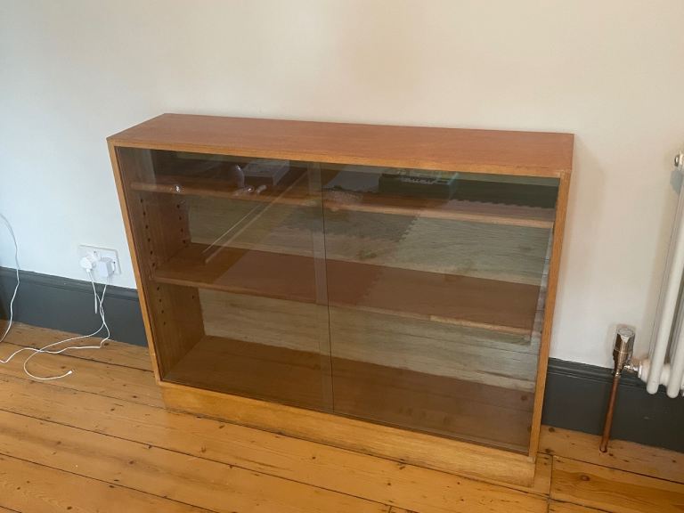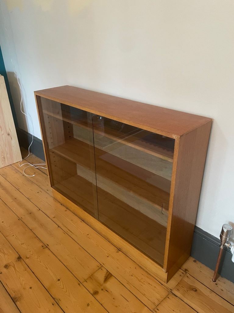 Bookcase/Display Cabinet - MID CENTURY - glass sliding doors