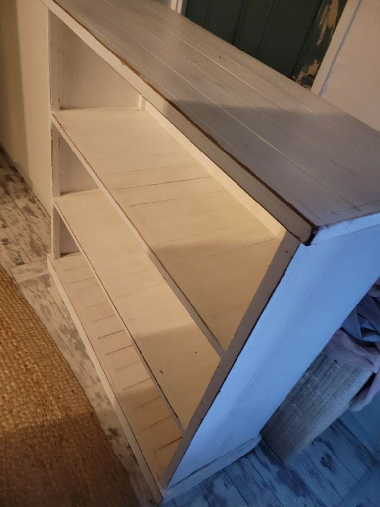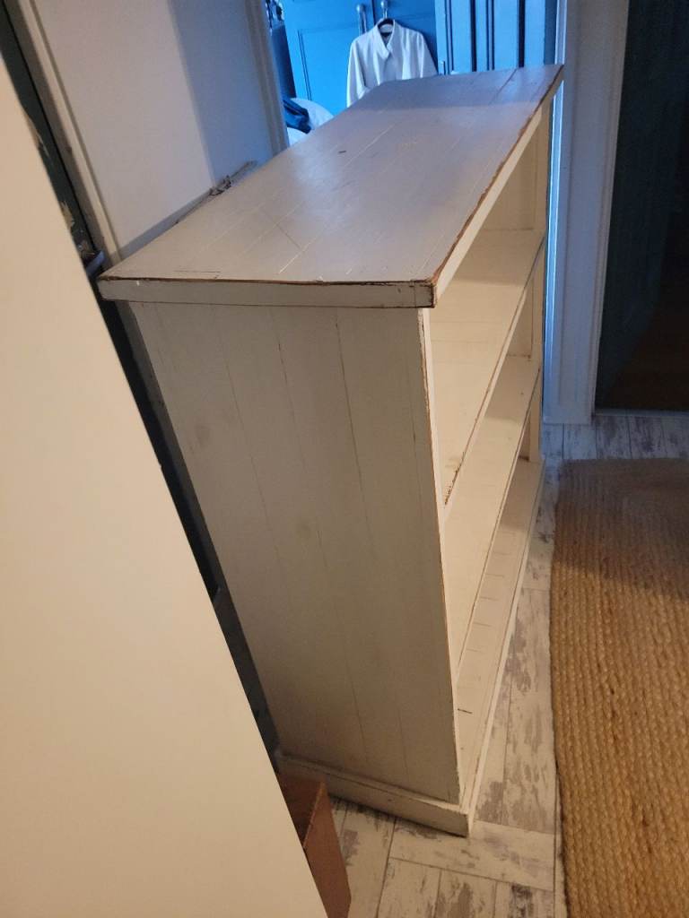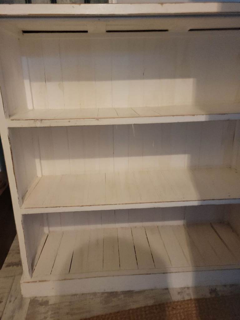 Storage shelves bookcase shabby chic , very light weight to move around, I've used for storing baskets that hold so much