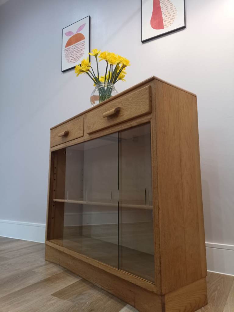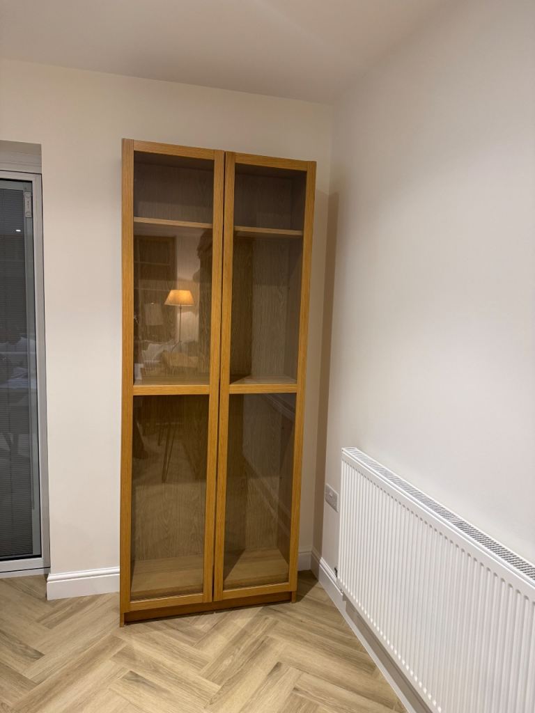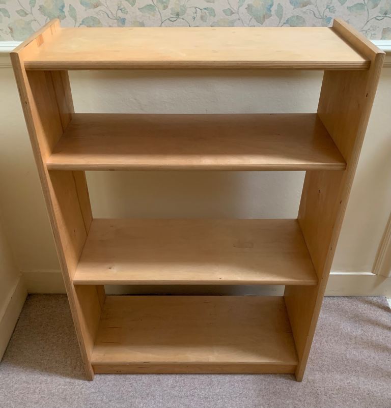 Ikea shelf. Has been used horizontally as sideboard so some wear where baskets have slid in and out. Ok condition.