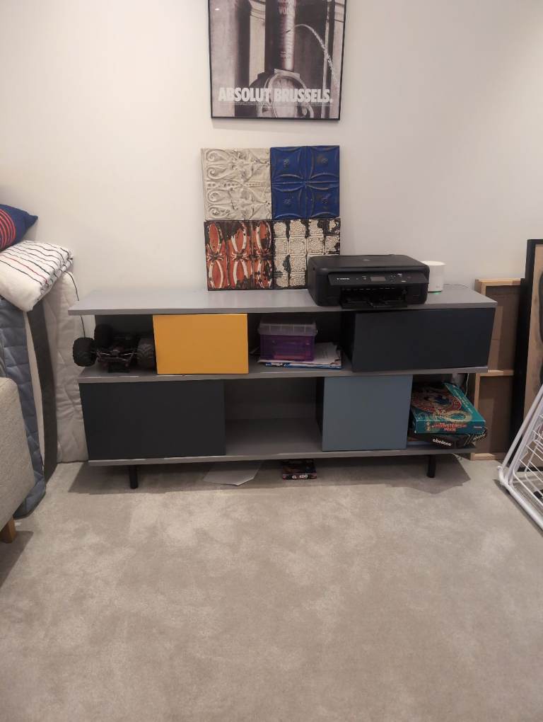 Easy storage with 6 open 'book shelf' spaces and 6 covered storage units. black modern look.