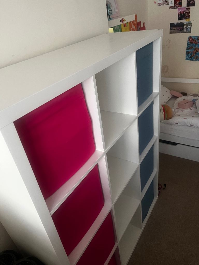 Posting for 5+ yearsIkea Kallax White Cube Storage Unit – Good Condition with Baskets