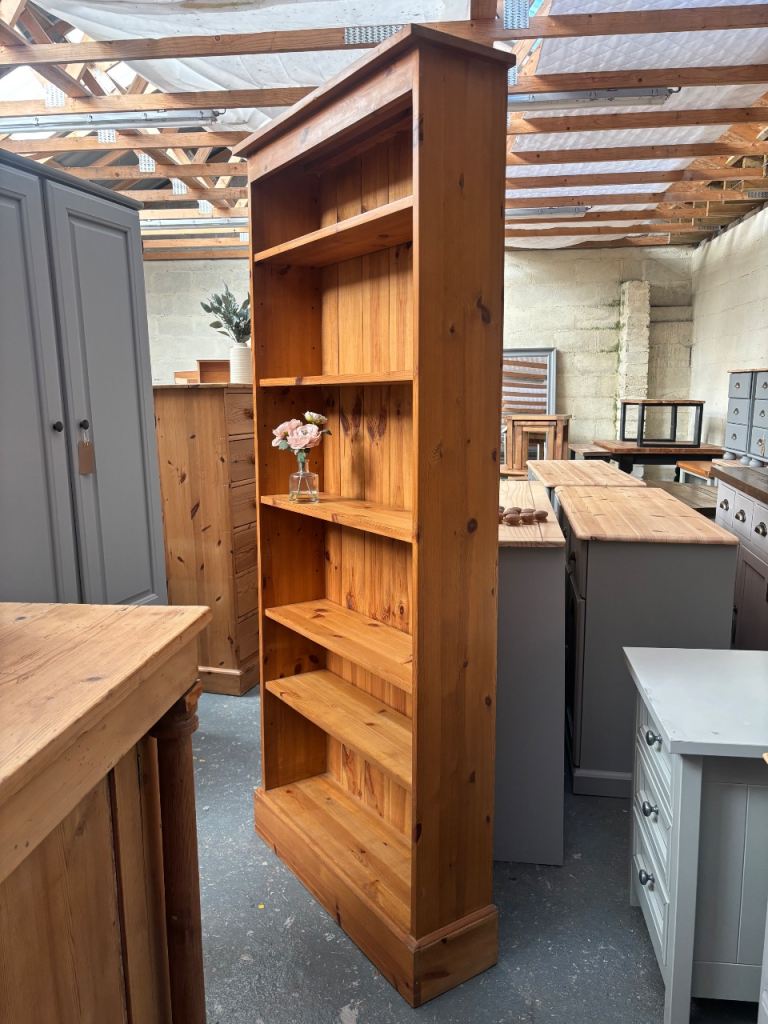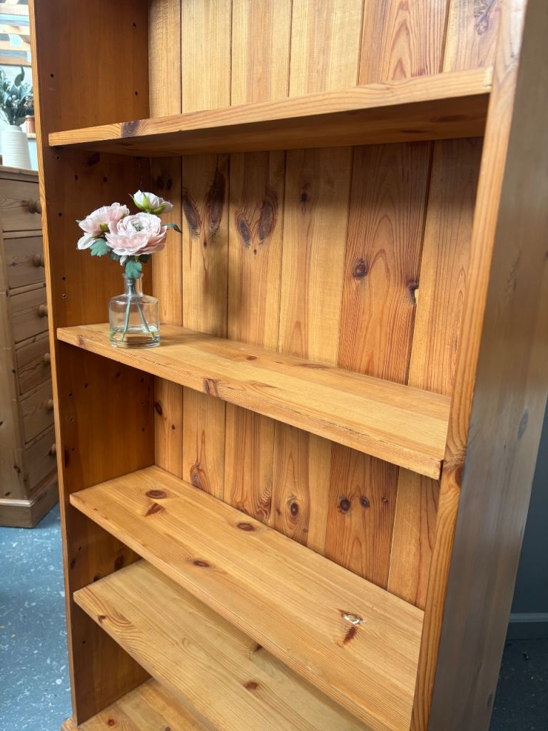 Beautiful, large, 100% solid pine tall bookcase. Adjustable shelves. Not cheap flat pack, this will last years. Good condition. 76cm wide, 23cm deep and 179 cm high.