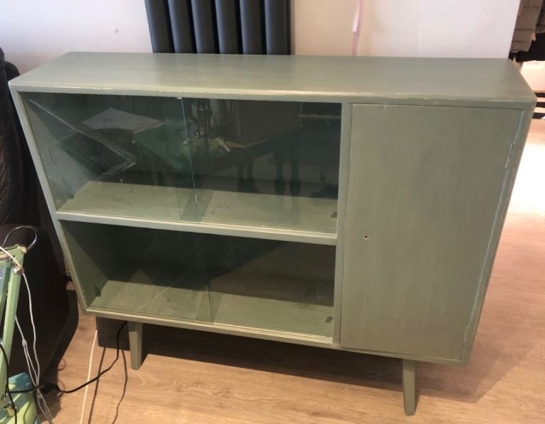 It's in good condition with minor signs of wear consistent with age, but sturdy, very solid and fully functional. Great piece of furniture. Adjustable shelves with banjo pins. Selling another bookcase separately - they are of a similar style so would complement each other if both bought and put in the same room.