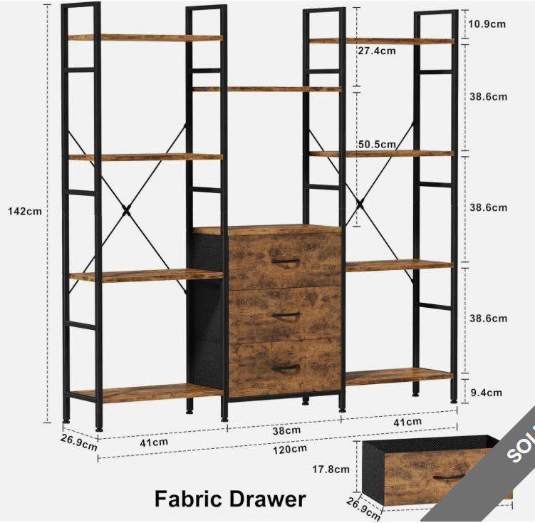 Posting for 4+ yearsOYRREU 100W x142Hcm Tall Bookcase with 3 Fabric Drawers
