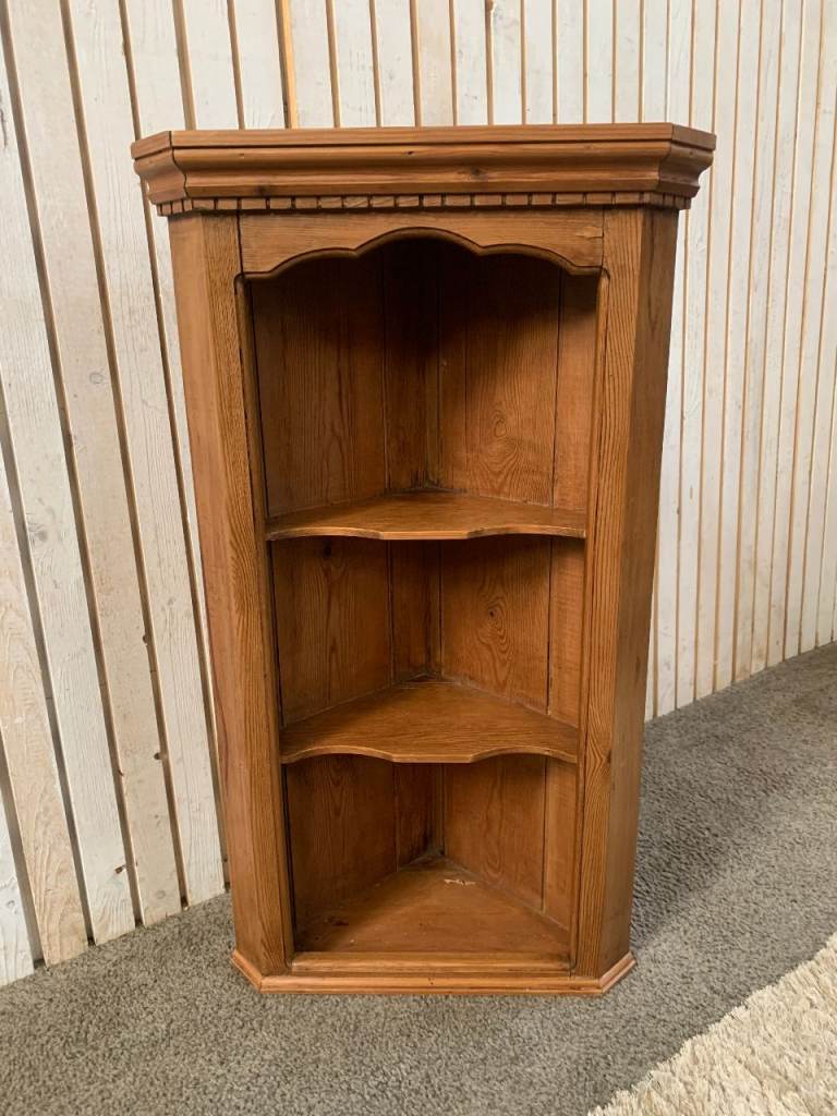 This small pine wall corner shelving unit is a rustic wooden display shelf, perfect for adding a touch of charm to any room. The corner unit is made of high-quality pine material, with a height of 82cm and a width of 33cm. It includes shelves, providing ample storage space for books, decorations, or any other items you want to display. The brown colour adds a warm and natural element to the overall design, making it a stylish and functional addition to your home.(725)