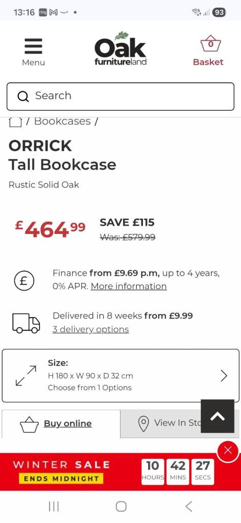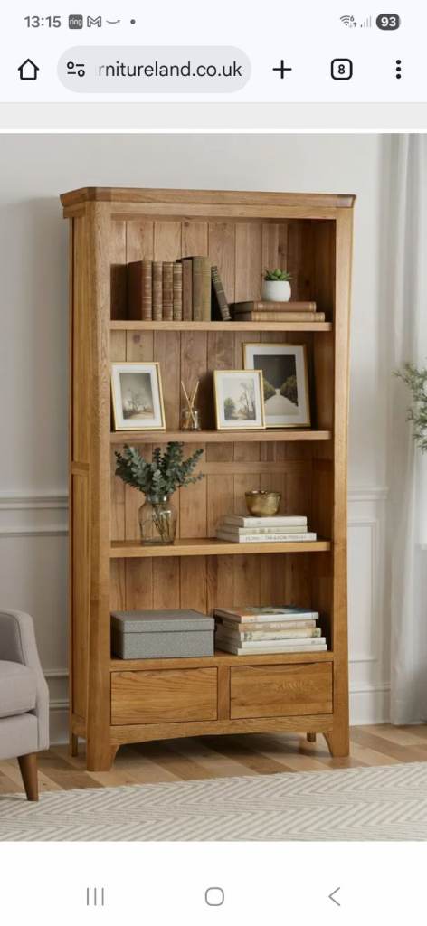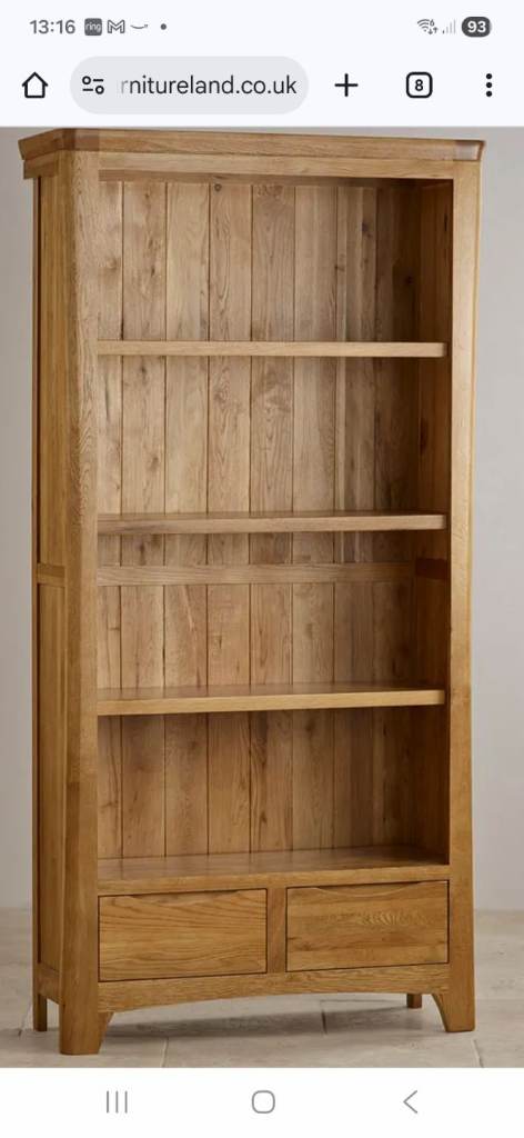 Bought a year ago, in excellent condition, change of room decor so no longer needed. Still selling in oak furniture land, for £464.99. You can change the height on 2 of the shelfs.