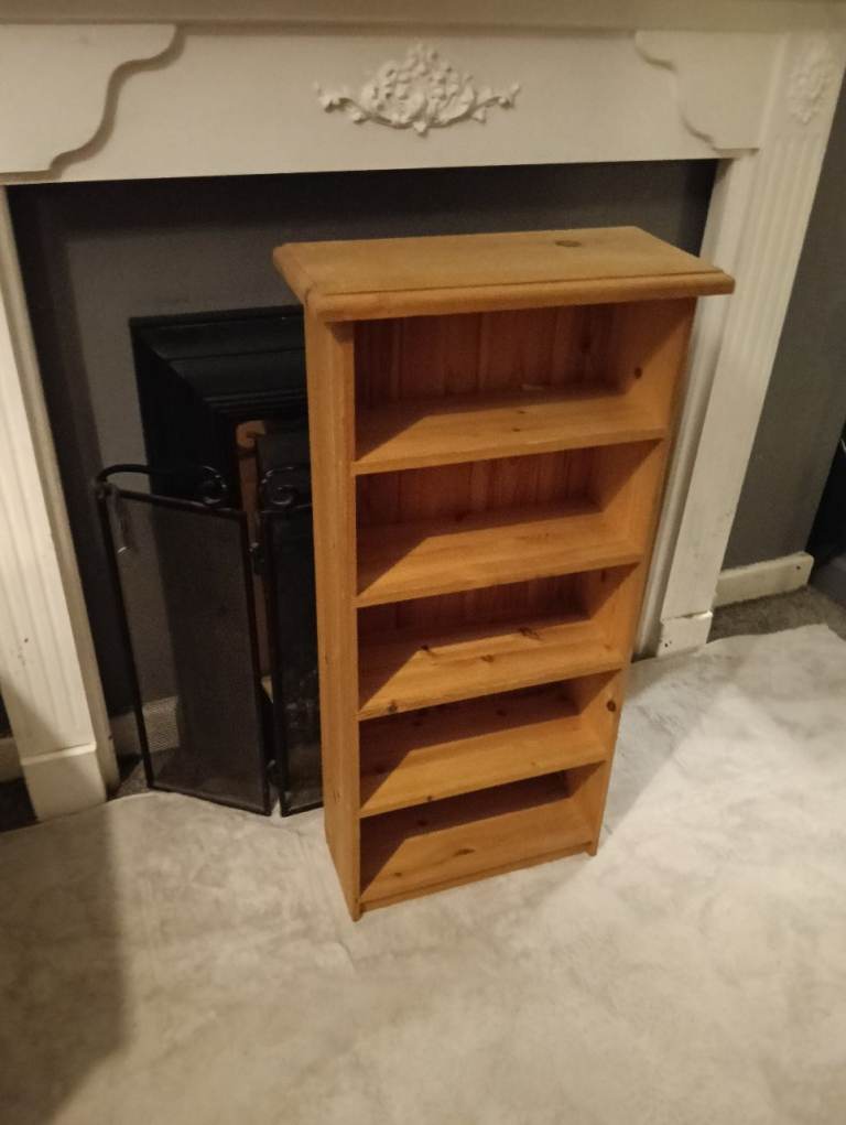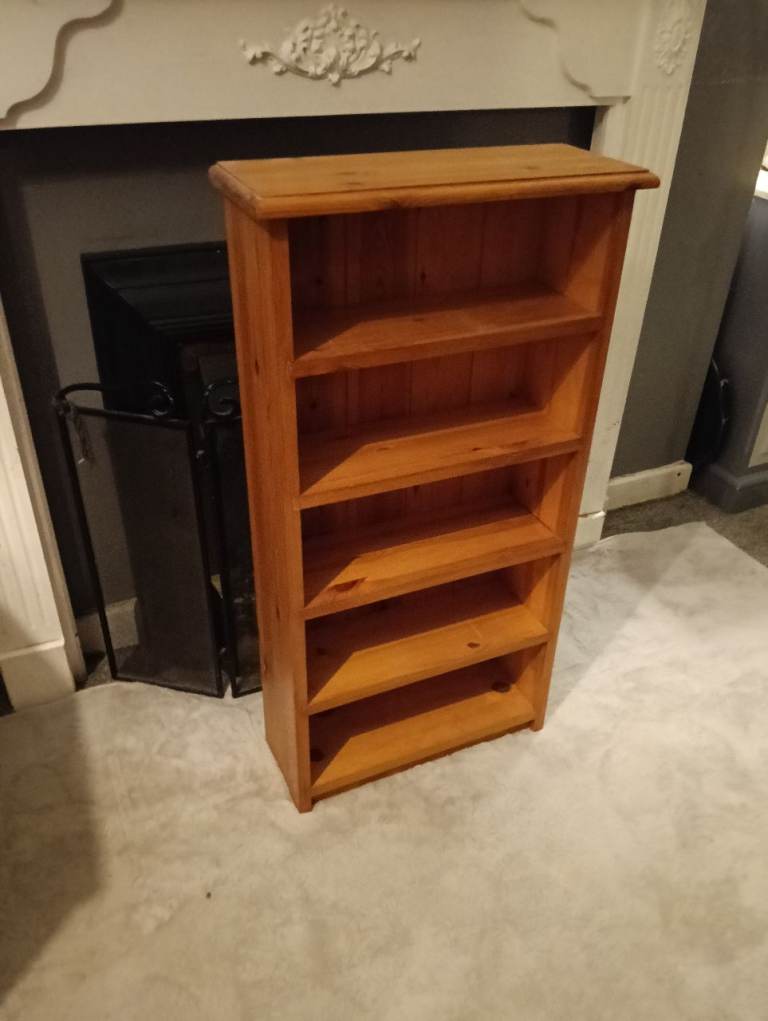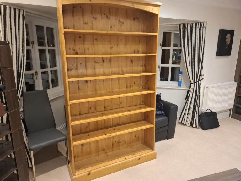 Solid oak bookcase with 2 drawers and 2 shelves, excellent condition, measures L180cm, d32cm, h120cm, free local delivery elsewhere for fuel cost.