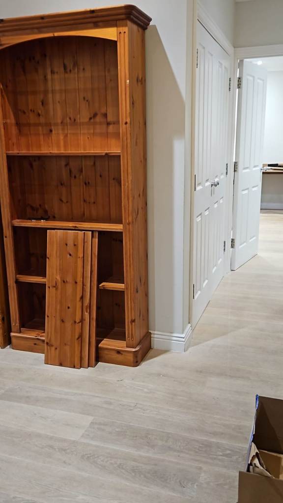 Solid wood bookcase, spare shelves have fixings. Moving on as no longer required in new home.