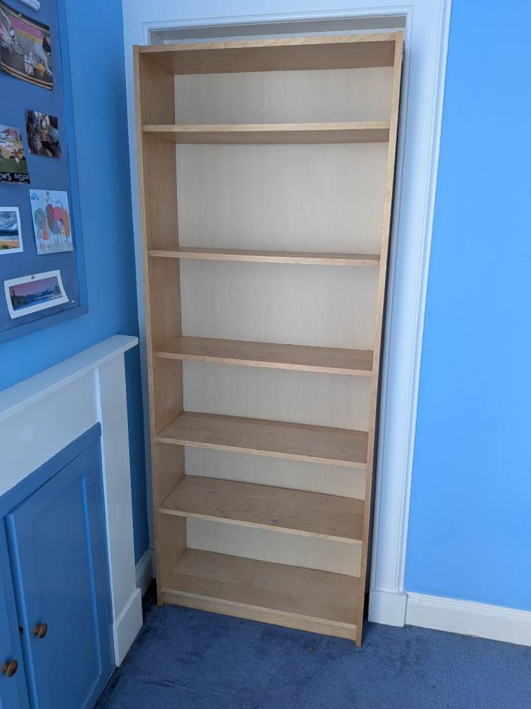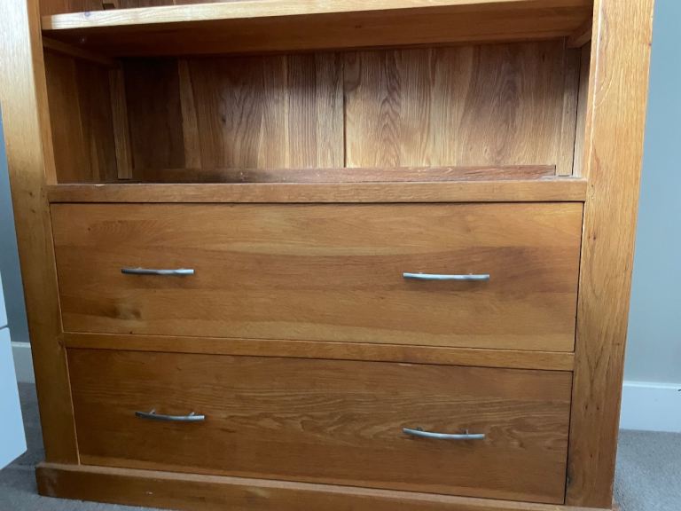 Solid wood bookcase with adjustable shelves and two drawers at the bottom. 89cm wide 30cm, height 195cm. Pick up or delivery within the area for small charge.
