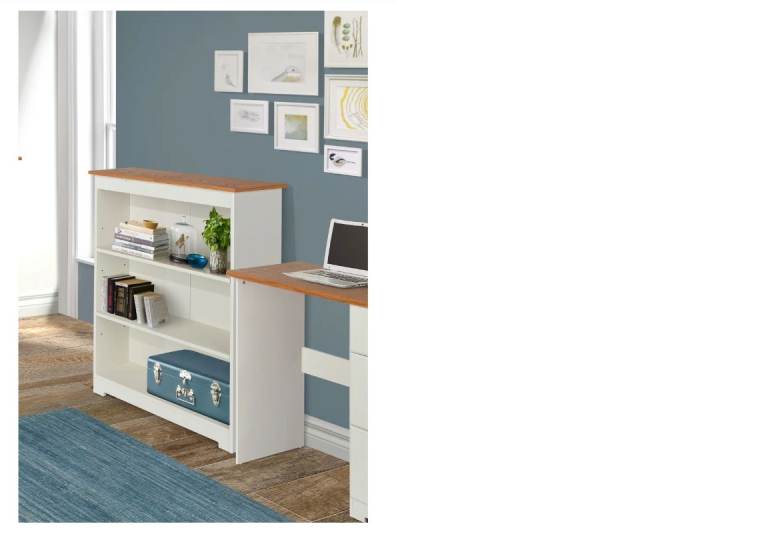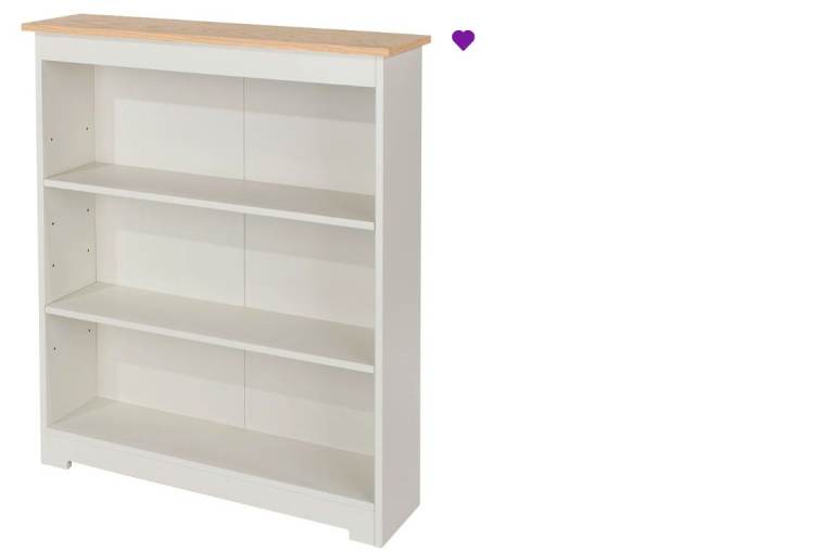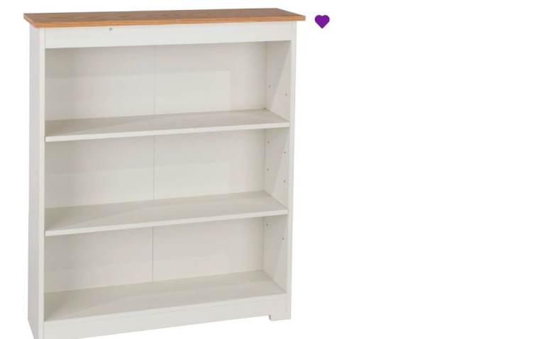 A useful wide bookcase with adjustable shelves and a short of space, this narrow bookcase has adjustable shelves, finished in a soft white paint finish with an Oak woodgrain effect easy to clean top.