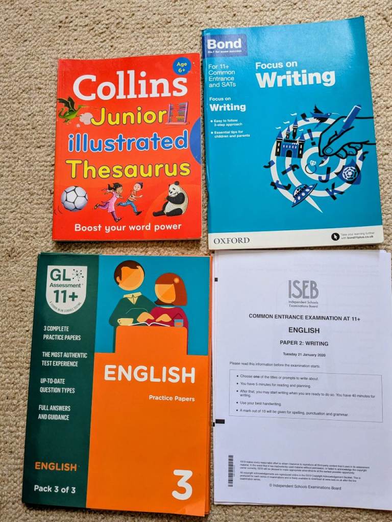 Mixed bundle of new maths / english workbooks, past exam papers (with answers) and reference books to help prepare for 11+ / Grammar / Private school entrance exams. Also will include a bundle of half used books too