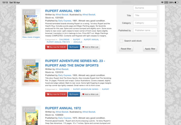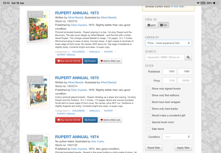 15 Vintage Rupert the Bear Annuals