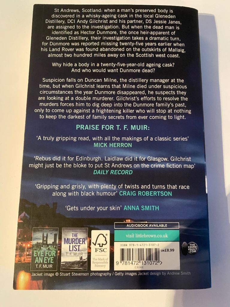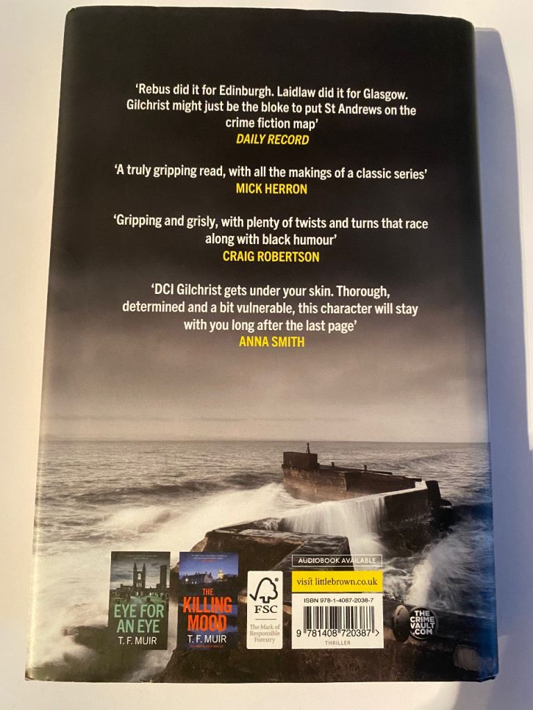 2 crime thriller books, 1 paperback & 1 hardback by author T.F Muir, DCI Andy Gilchrist series based in St.Andrews.