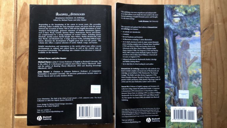 2x Literature Anthologies - Renaissance & Romanticism Blackwell