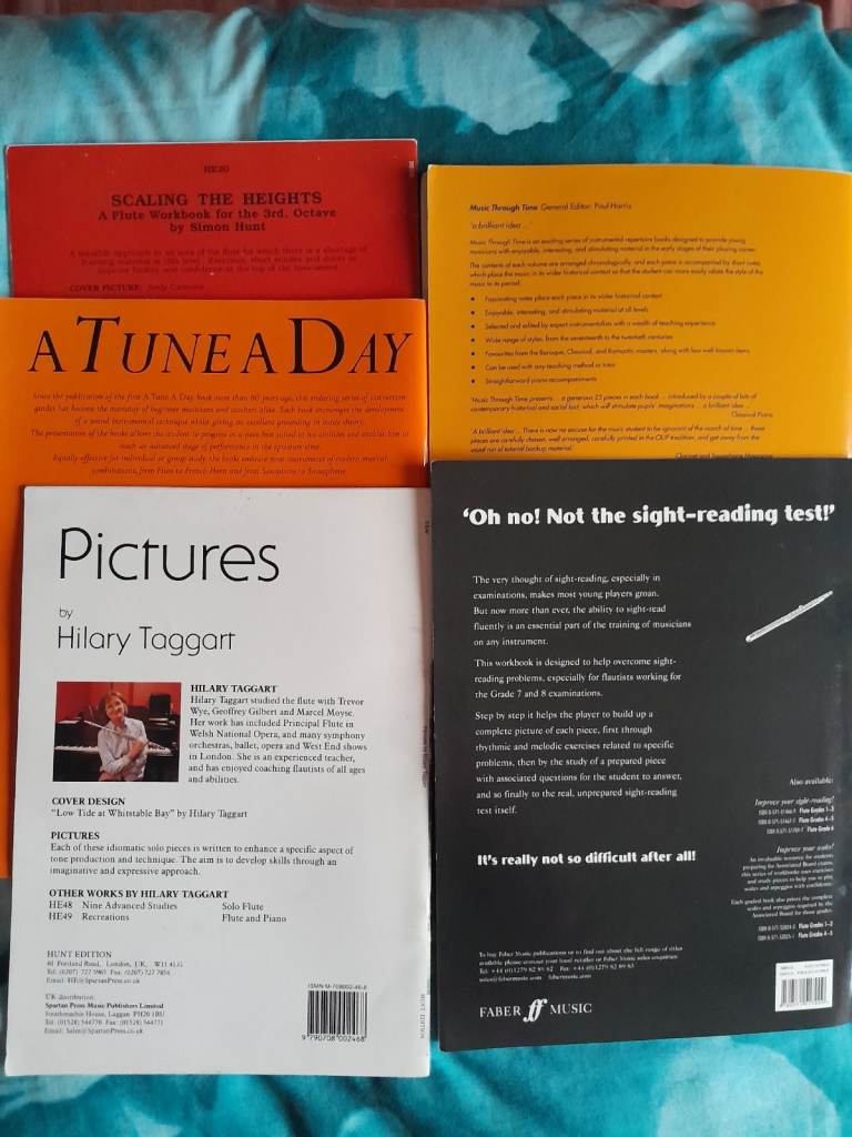 All five music books for the flute, as shown, in like-new condition, for a bargain £6,
