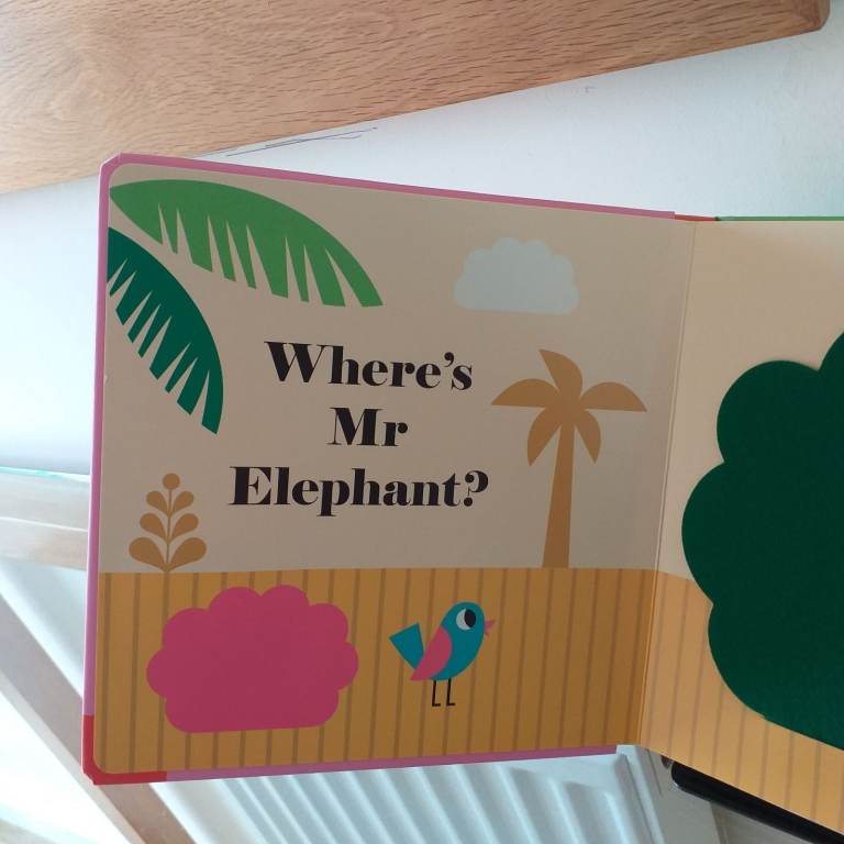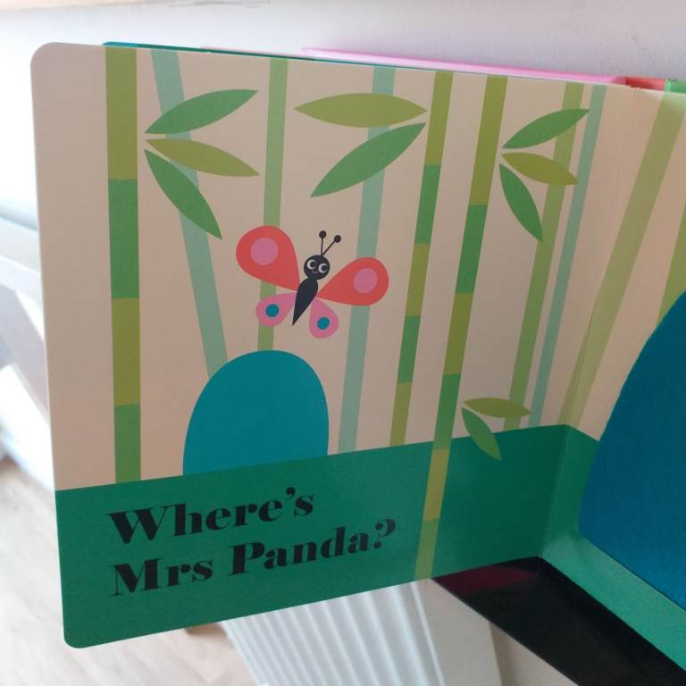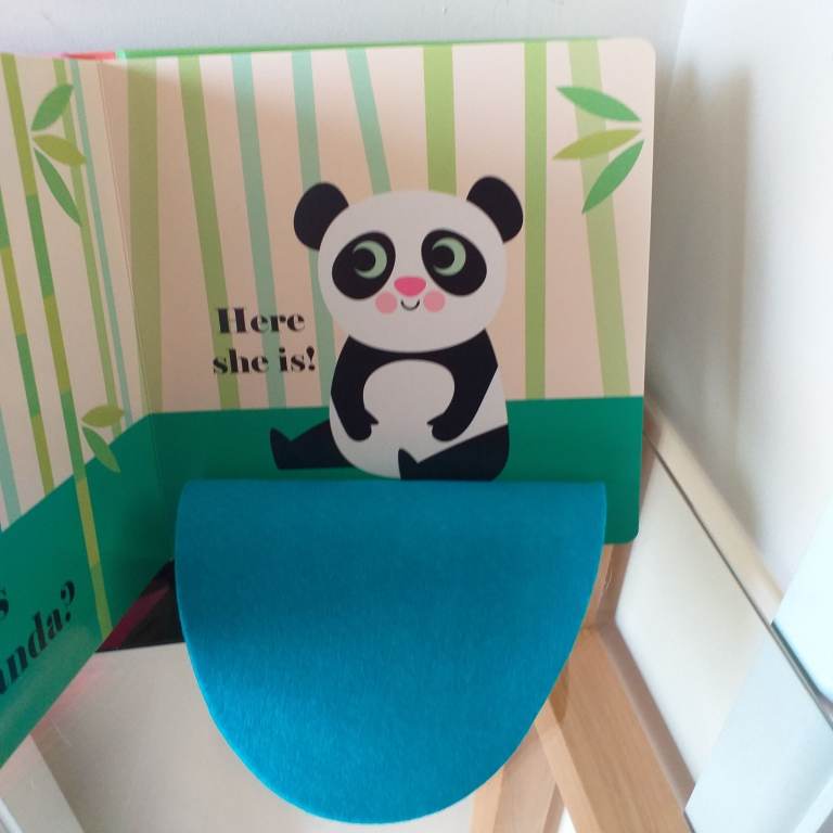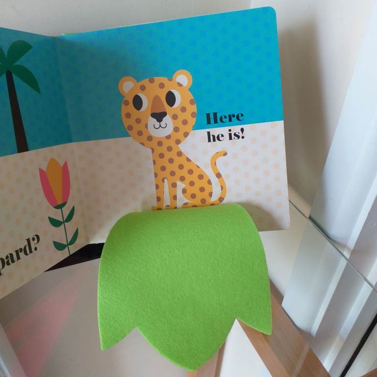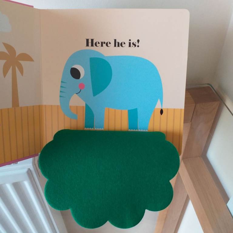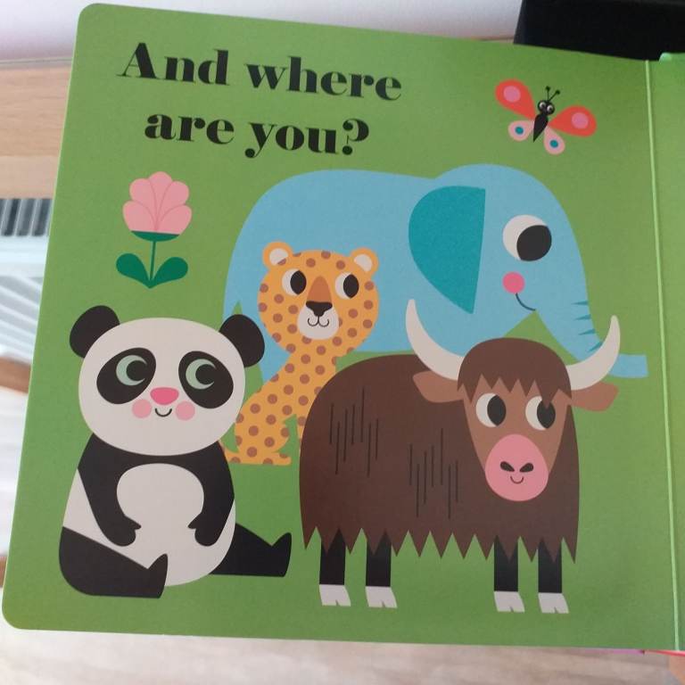 A Hide & seek hardback book for a young child / toddler with felt flaps & a mirror enclosed.