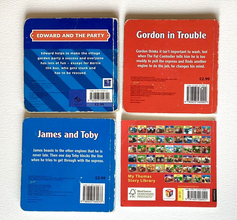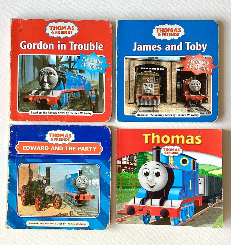 4 vintage Thomas & Friends books: 3 of them cardboard books: 1. Gordon in Trouble Britt Allcroft ( Thomas) 2000 - acceptable condition, has some paper damage inside pages, as in photos. 2. James and Toby Britt Allcroft ( Thomas) 2000 - acceptable condition, has some paper damage inside pages, as in photos. 3. Edward and the party Britt Allcroft Gullane ( Thomas) 2003 - acceptable condition, has some paper damage inside pages, as in photos. And one paper book: 4. Thomas,FSC, HiT entertainment, Egmont 2003- good condition. Collection from Spixworth.