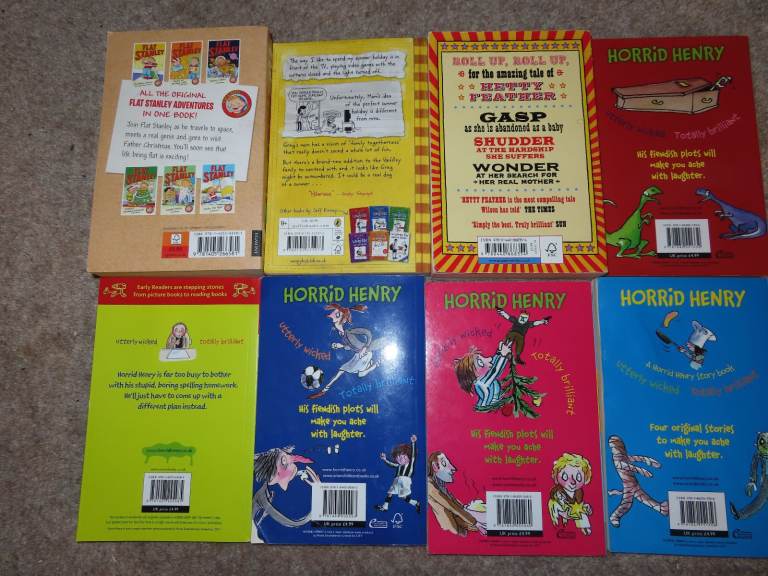 Children's Books bundle - inc. Flat Stanley, Horrid Henry (5), Diary of Wimpkey Kid , Hetty Feather - see photos - 8 in total