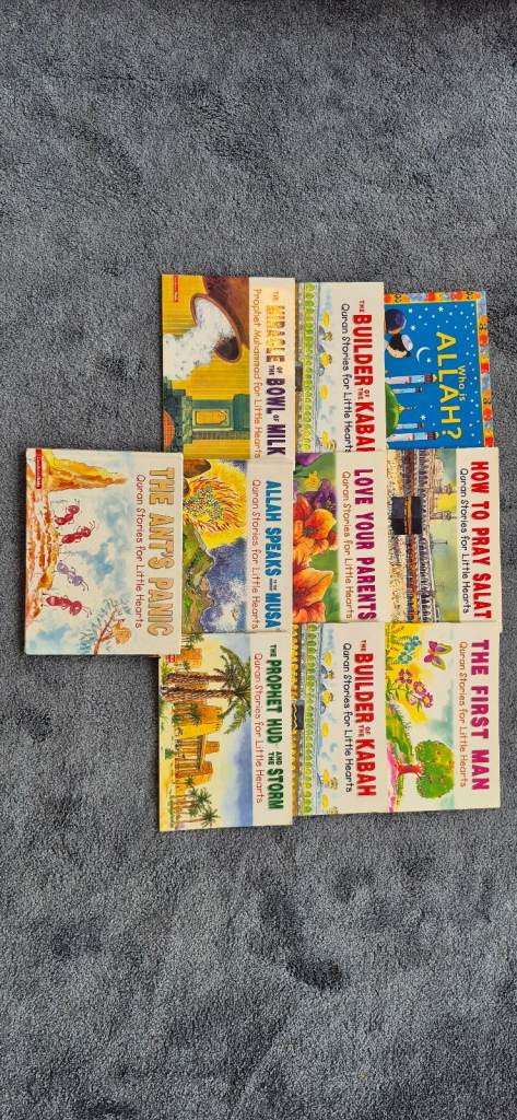 A great selection of islamic books. Brilliant way to teach islamic values to your little one. Used but in good condition. Smoke free home.